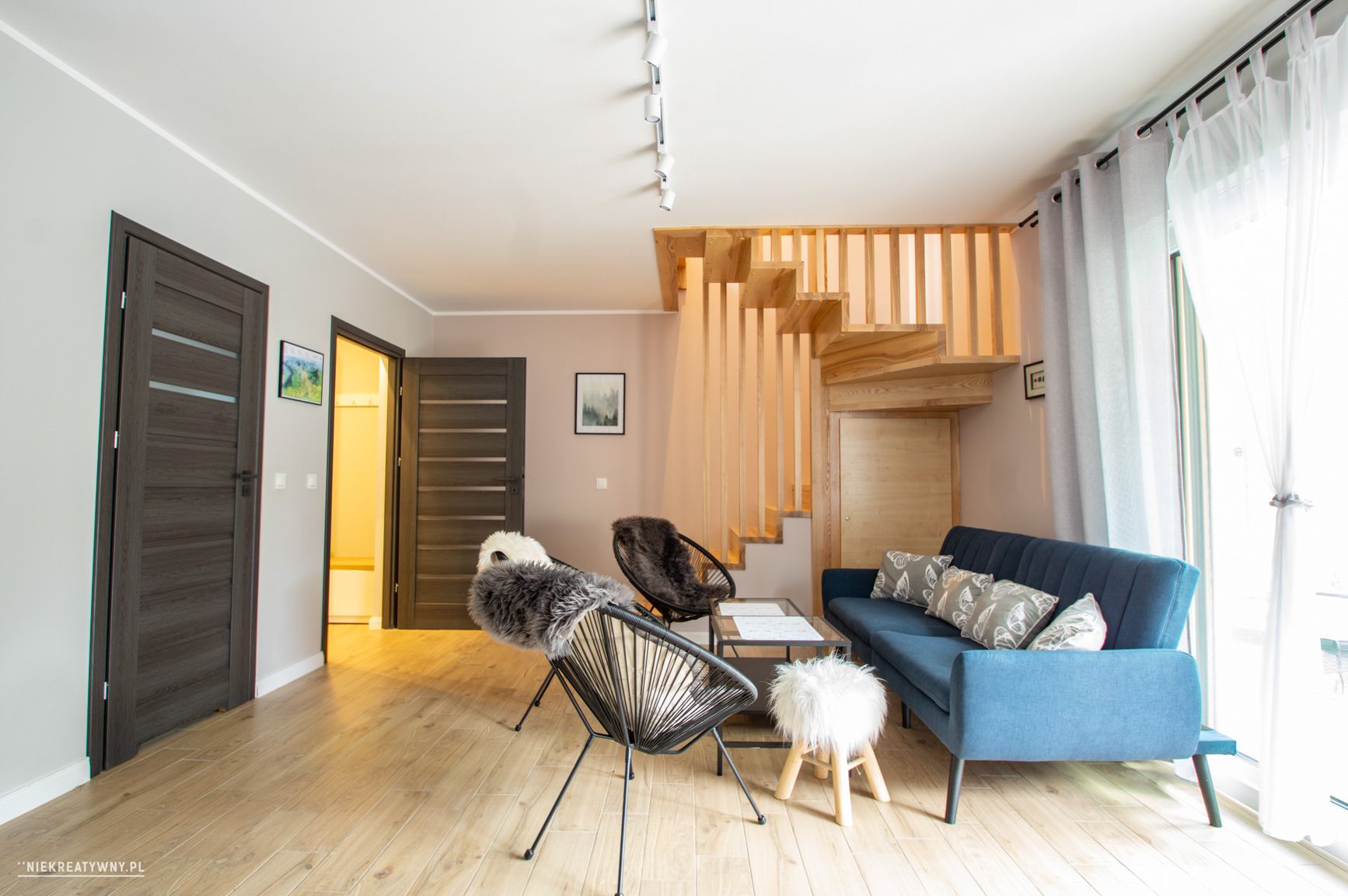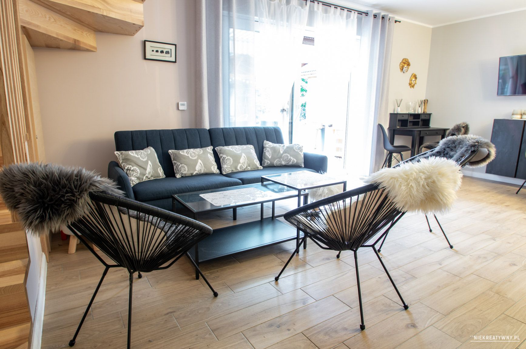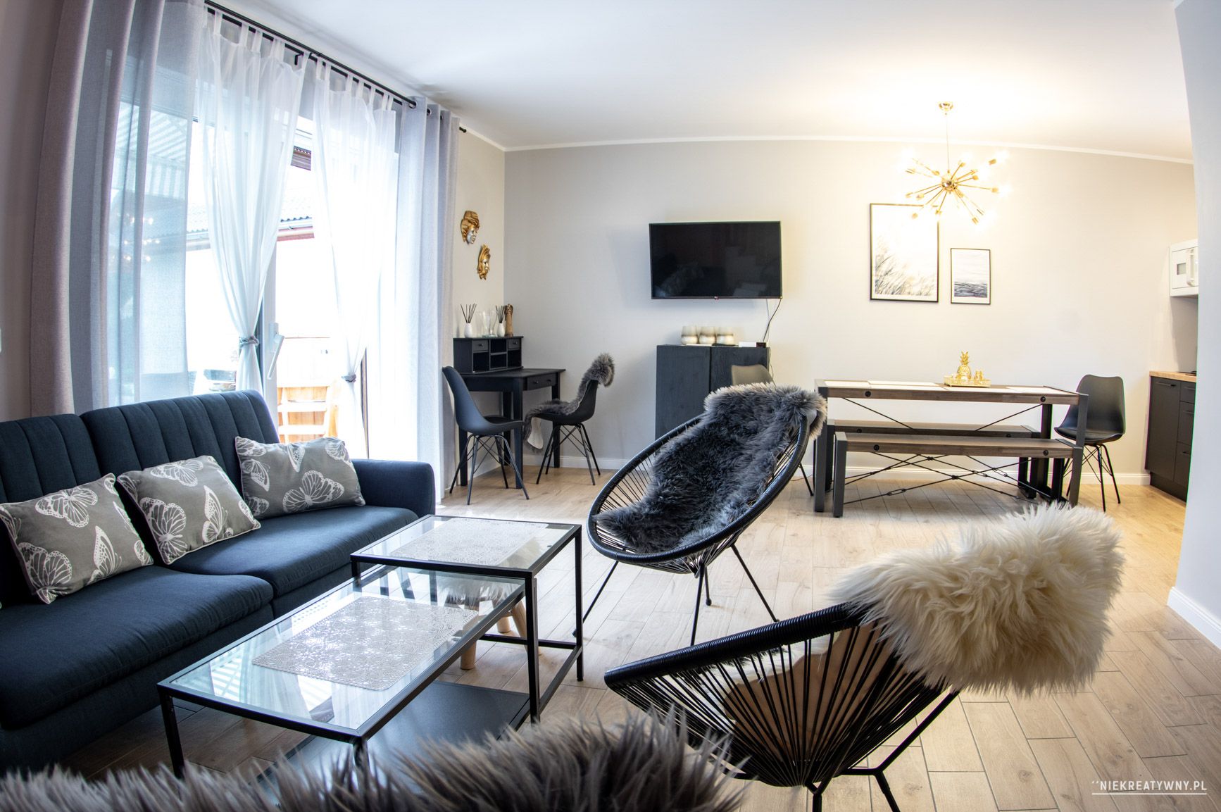 - salon z wyjściem na taras (2 x rozkładana sofa, tv)
