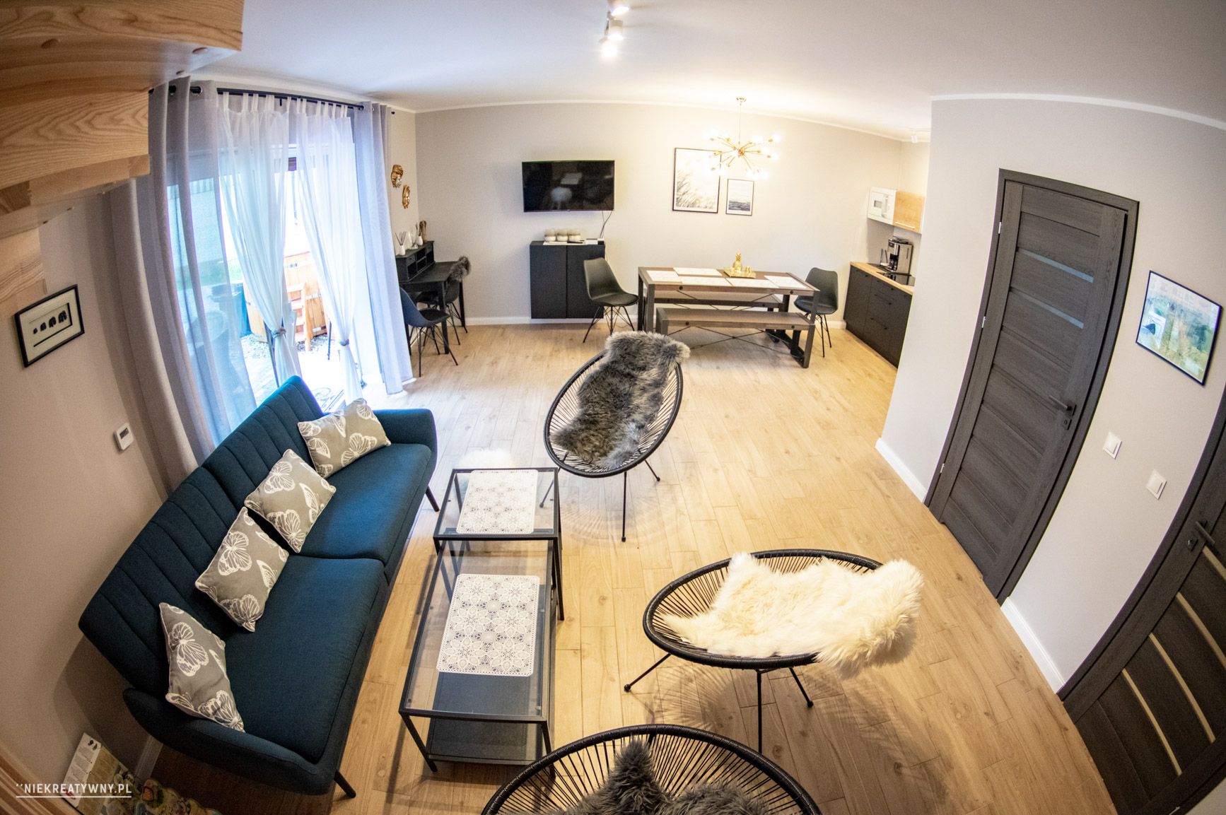 - aneks kuchenny w pełni wyposażony (pełna zastawa, kuchenka, zmywarka, czajnik el.)