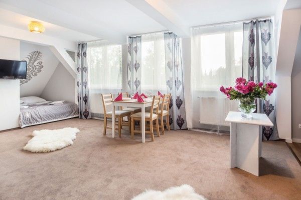 Lokalizacja: Apartament zlokalizowany jest w zabytkowym budynku Pałacu Tatrzańskim mieszczącym się w malowniczej miejscowości Bukowina Tatrzańska na Wierchu Głodowskim, z którego okien rozpościera się widok na piękny górskie łąki oraz lasy. To miejsce, w którym każdy Gość znajdzie coś dla siebie, aby mile i aktywnie spędzić wolny czas. W pobliżu znajduje się przystanek autobusowy, ośrodek zdrowia, apteka, sklepy spożywcze oraz karczmy.