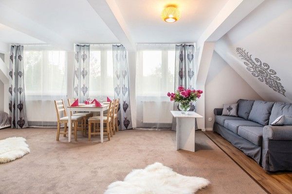 Apartament zlokalizowany jest na III piętrze. Powierzchnia łączna apartamentu to 39,46 m2 (nie licząc powierzchni łazienki). Mieszkanie zapewnia komfort oraz domową atmosferę. Idealny dla max 6 osób.