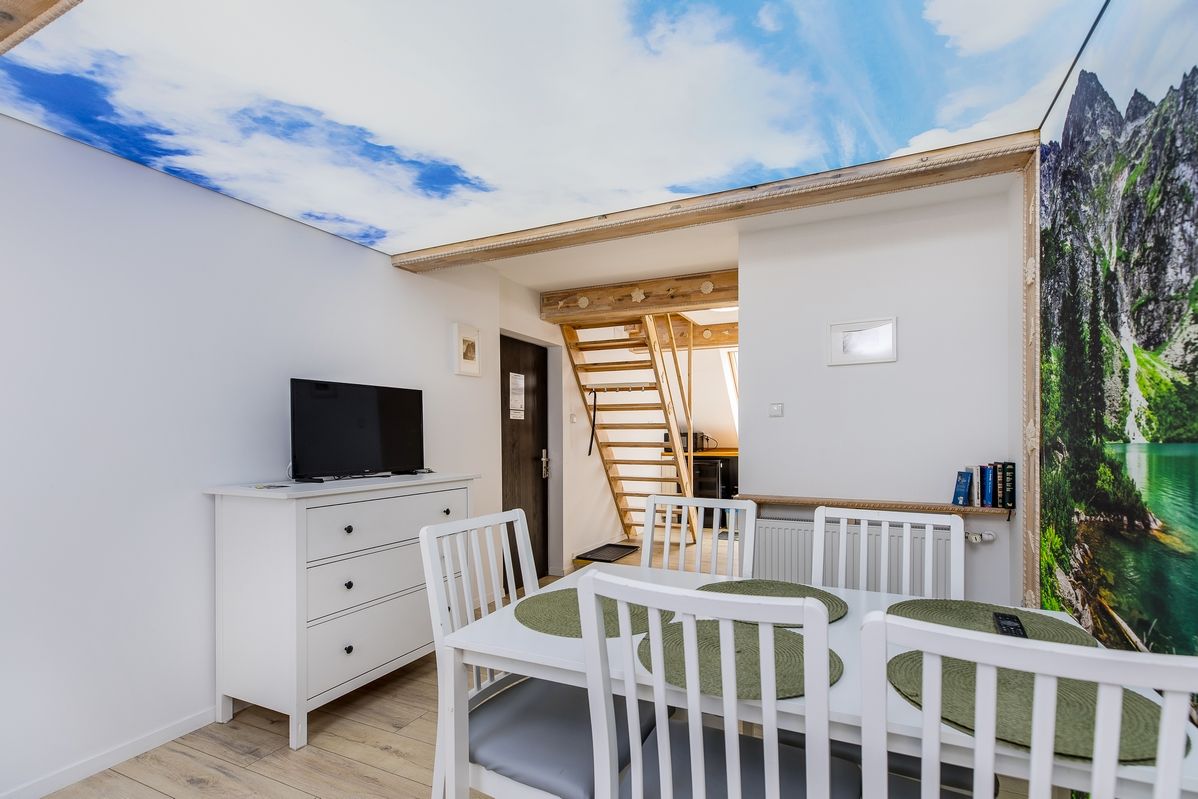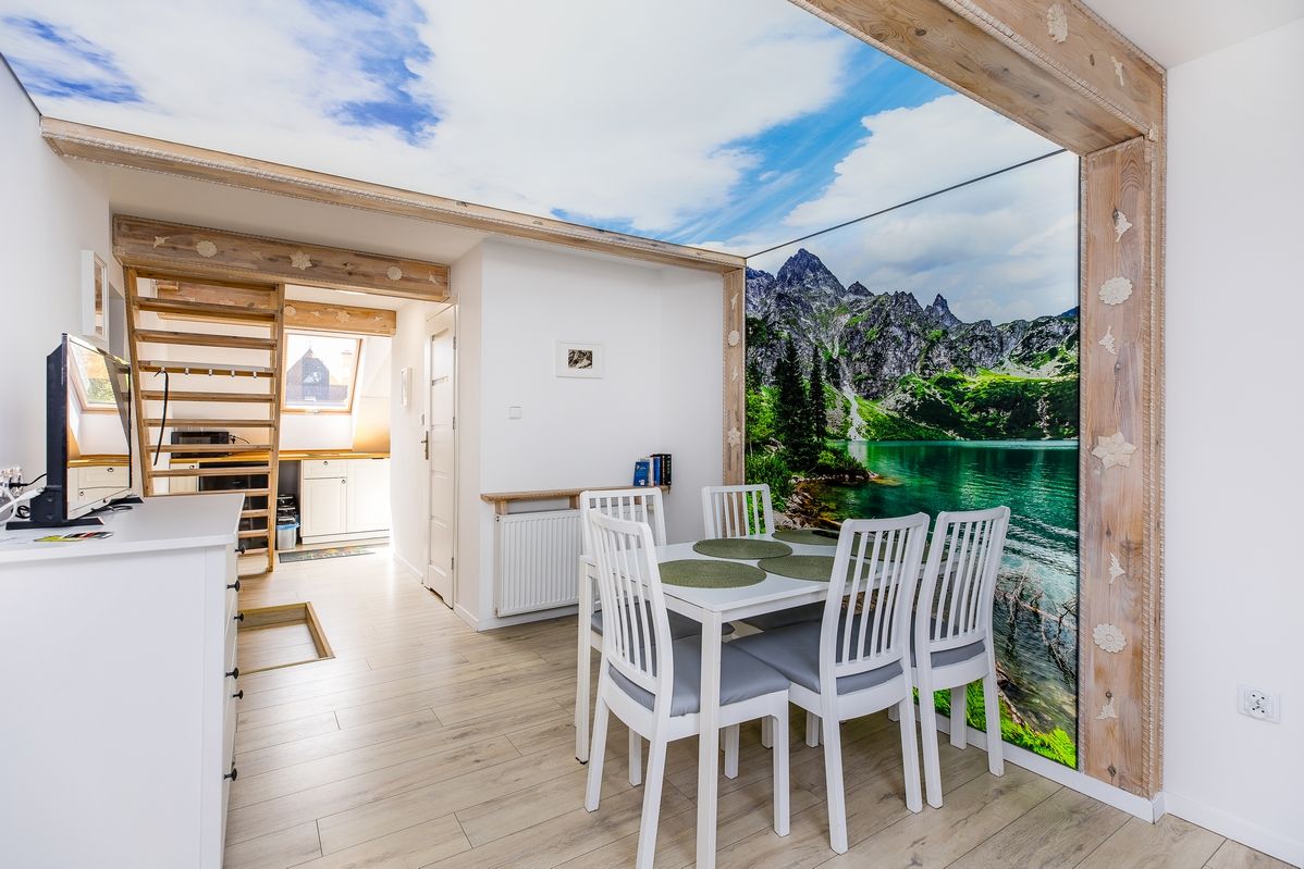 Lokalizacja: Apartament zlokalizowany jest w zabytkowym budynku Pałacu Tatrzańskim mieszczącym się w malowniczej miejscowości Bukowina Tatrzańska na Wierchu Głodowskim, z którego okien rozpościera się widok na piękny górskie łąki oraz lasy. To miejsce, w którym każdy Gość znajdzie coś dla siebie, aby mile i aktywnie spędzić wolny czas. W pobliżu znajduje się przystanek autobusowy, ośrodek zdrowia, apteka, sklepy spożywcze oraz karczmy