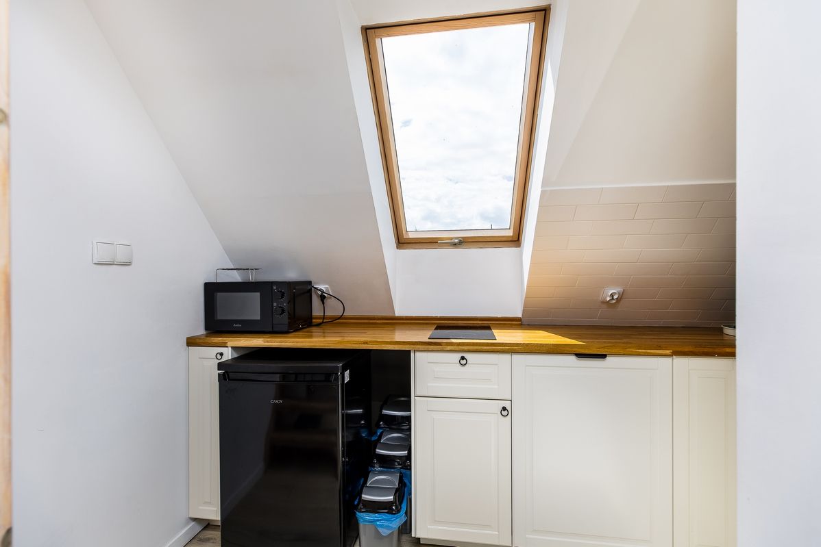 Kuchnia: aneks kuchenny - kuchenka, lodówka, czajnik, mikrofala, toster ,naczynia kuchenne.
