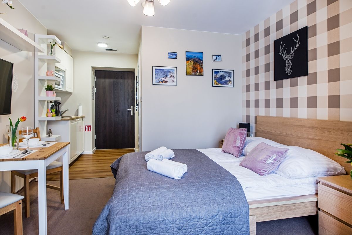 Każdy apartament wyposażony jest w podstawowe środki chemiczne oraz mop z wiaderkiem. Każdy pokój wyposażony jest w bezpłatny dostęp do internetu.