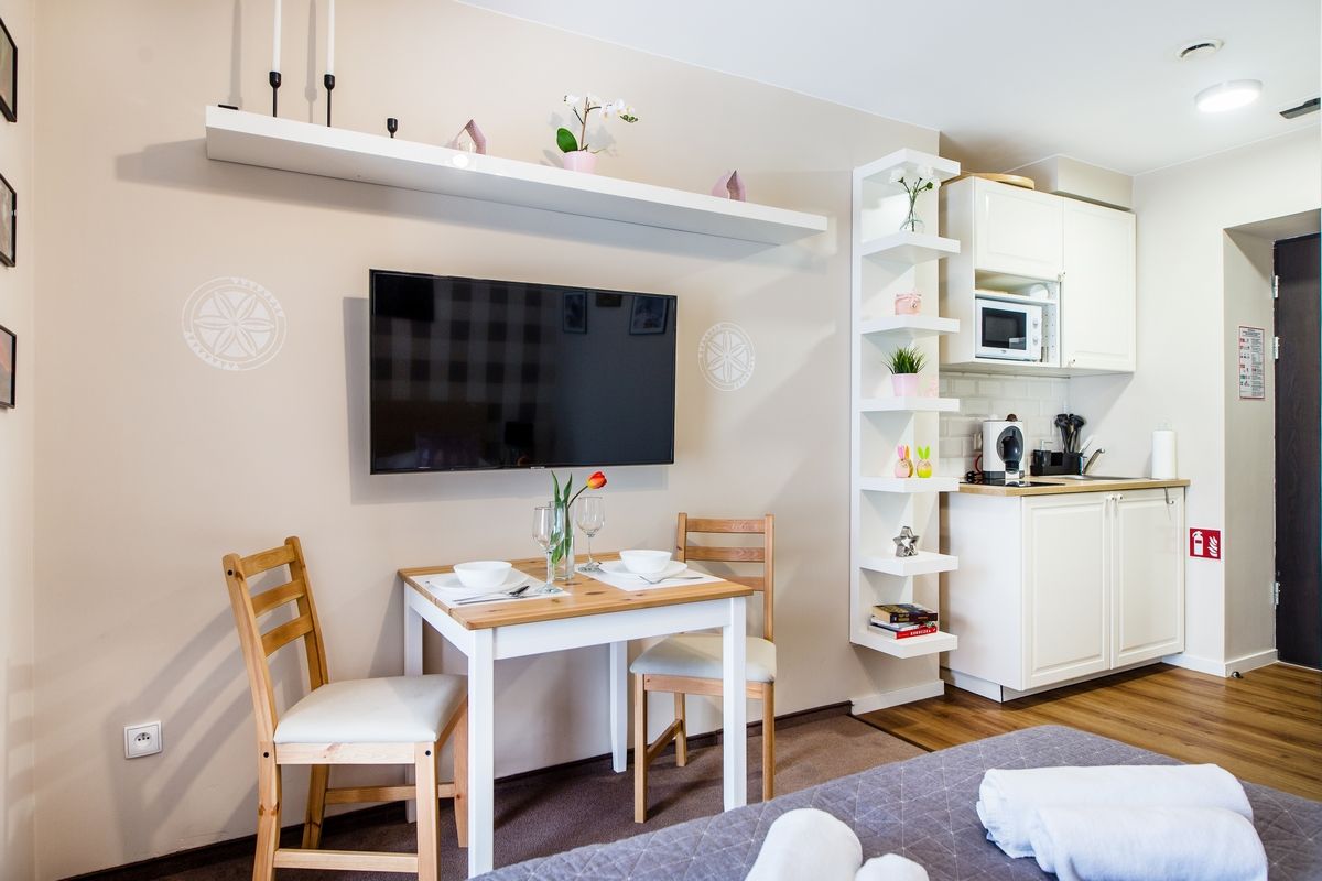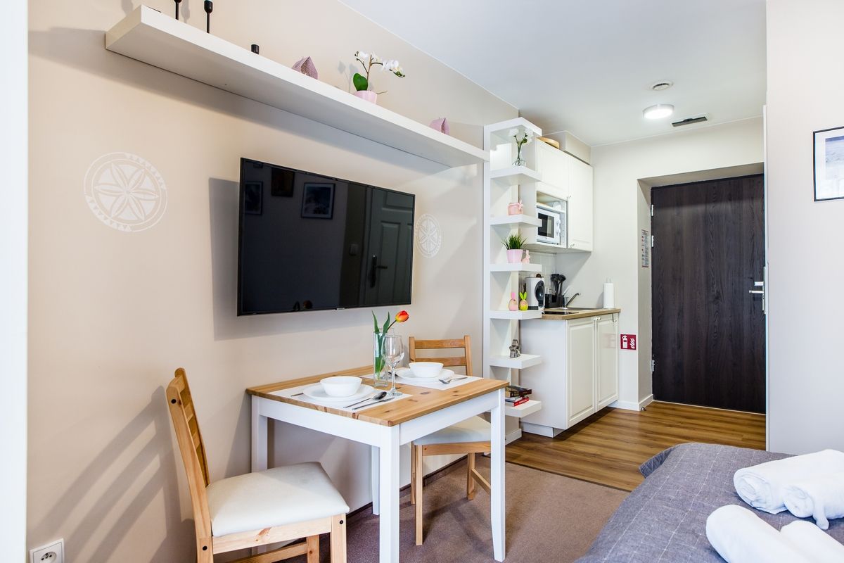 Apartament zlokalizowany jest na I piętrze. Powierzchnia łączna apartamentu to 19 m2 (nie licząc powierzchni łazienki). Mieszkanie zapewnia komfort oraz domową atmosferę. Idealny dla max 2 osób.
