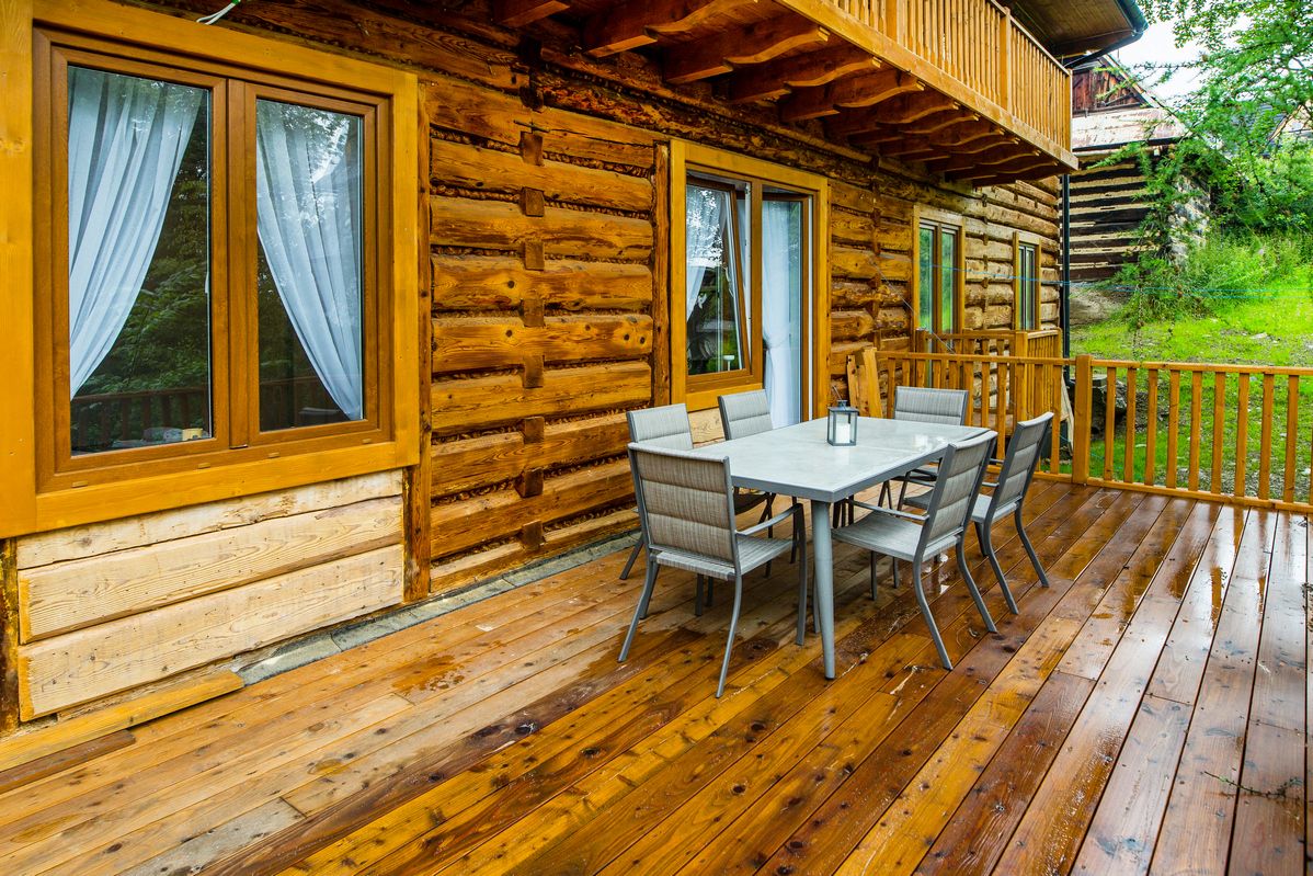 Taras: duży stół z 6 krzesłami