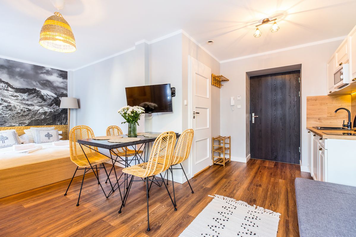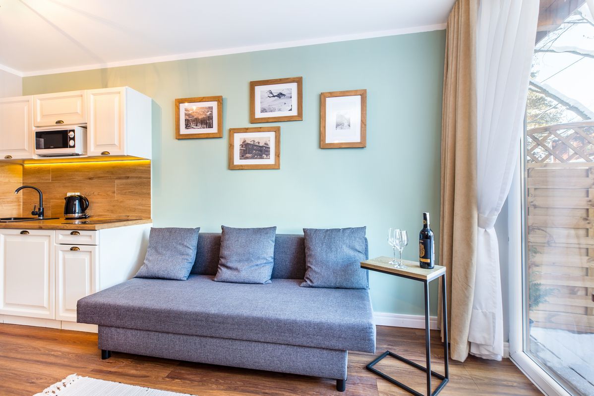 Lokalizacja: Apartament zlokalizowany jest w zabytkowym budynku Pałacu Tatrzańskim mieszczącym się w malowniczej miejscowości Bukowina Tatrzańska na Wierchu Głodowskim, z którego okien rozpościera się widok na piękny górskie łąki oraz lasy. To miejsce, w którym każdy Gość znajdzie coś dla siebie, aby mile i aktywnie spędzić wolny czas. W pobliżu znajduje się przystanek autobusowy, ośrodek zdrowia, apteka, sklepy spożywcze oraz karczmy.