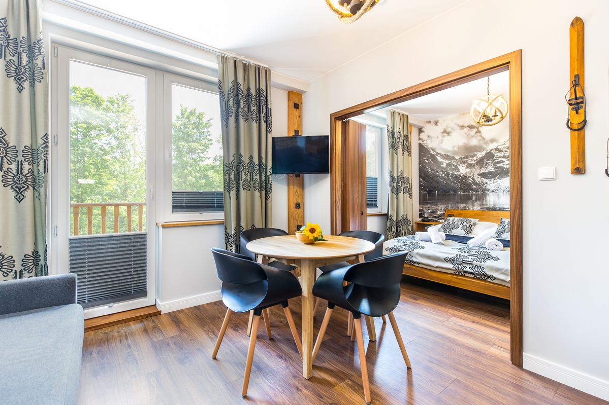 Lokalizacja: Apartament zlokalizowany jest w zabytkowym budynku Pałacu Tatrzańskim mieszczącym się w malowniczej miejscowości Bukowina Tatrzańska na Wierchu Głodowskim, z którego okien rozpościera się widok na piękny górskie łąki oraz lasy. To miejsce, w którym każdy Gość znajdzie coś dla siebie, aby mile i aktywnie spędzić wolny czas. W pobliżu znajduje się przystanek autobusowy, ośrodek zdrowia, apteka, sklepy spożywcze oraz karczmy.