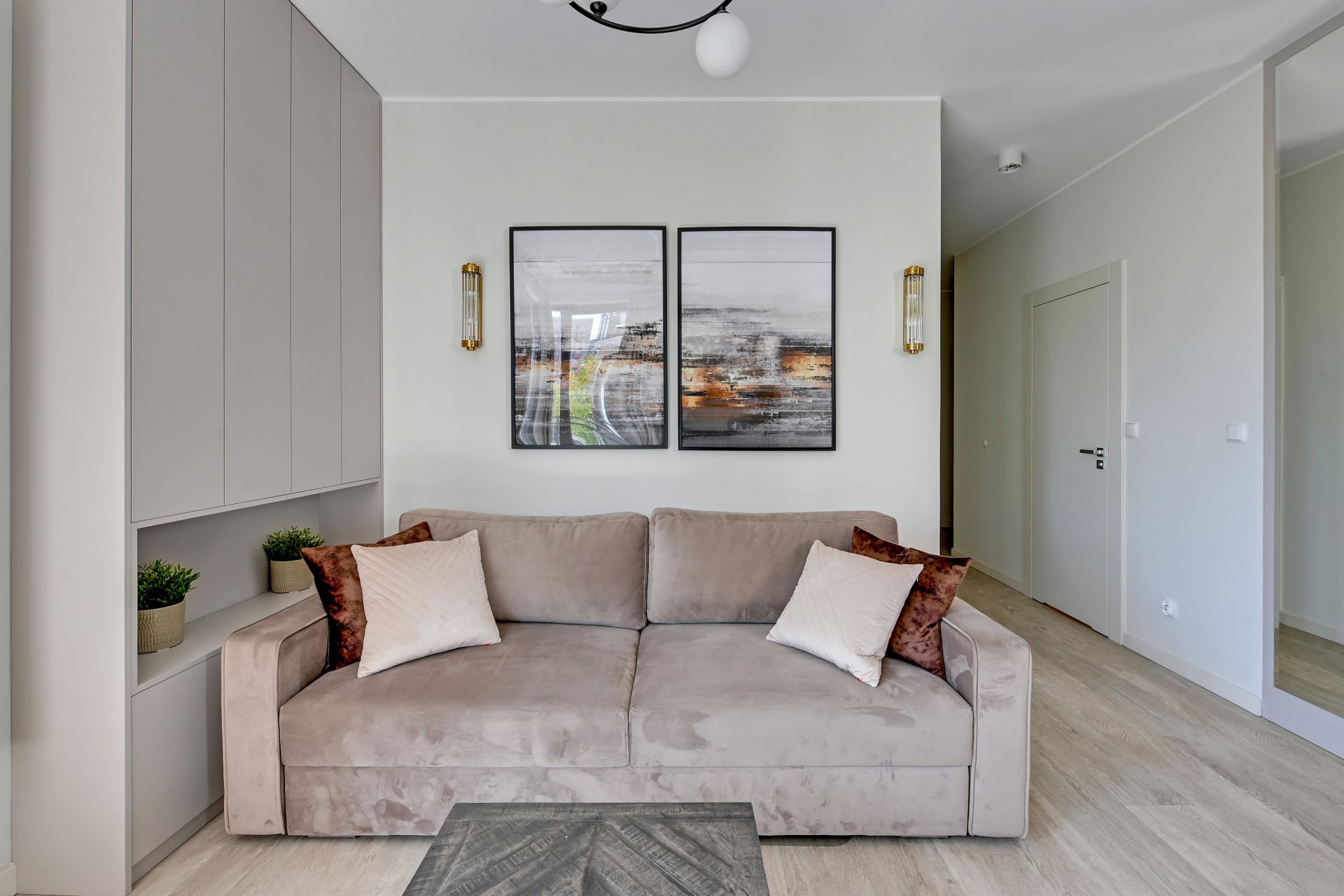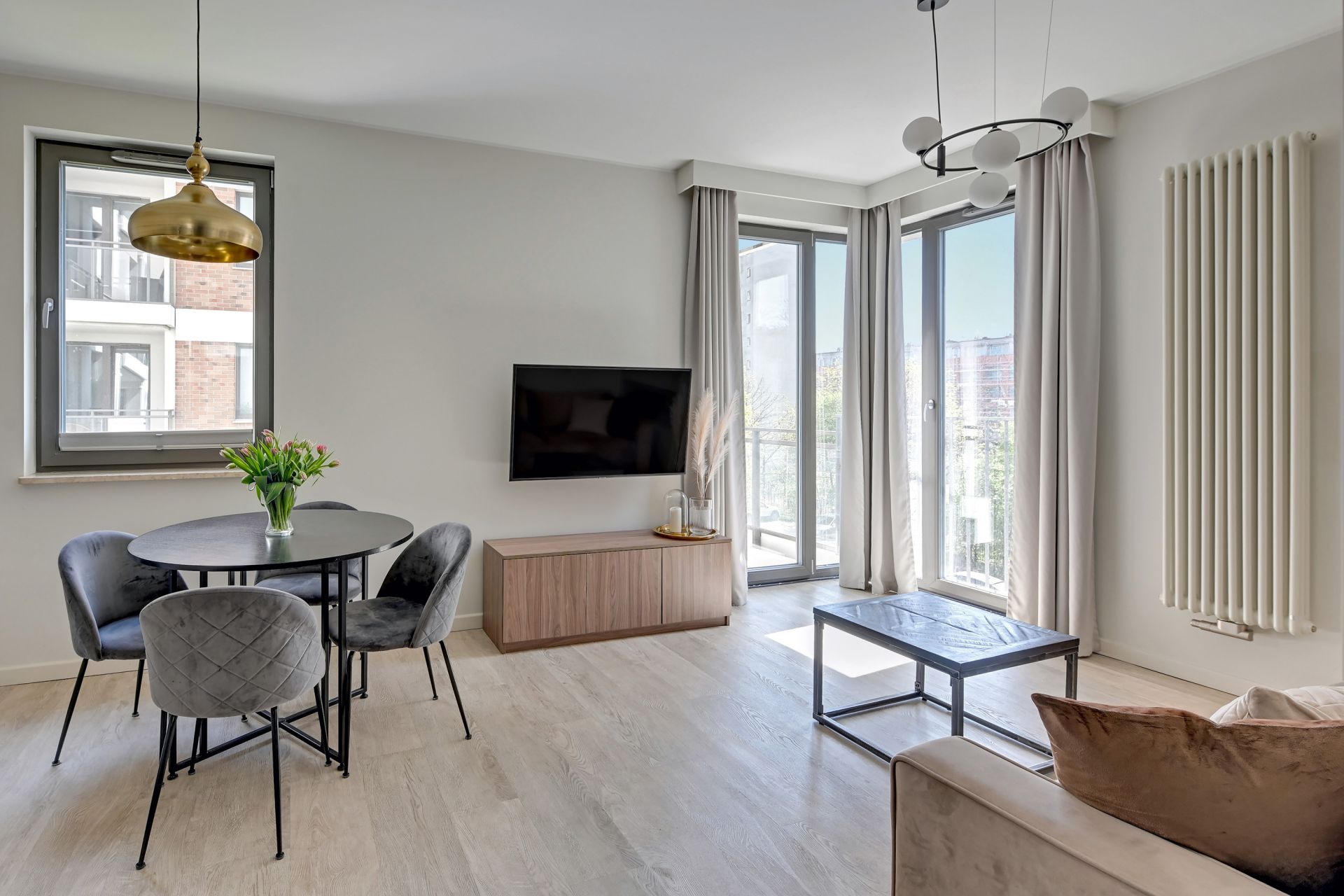 Nowoczesny, dwupokojowy apartament położony w urokliwej dzielnicy Gdańska, gdzie od Starego Miasta dzieli nas pięciominutowy spacer. Modny wystrój i funkcjonalne wnętrze spełnią oczekiwania nawet najbardziej wymagających gości. Oddzielna sypialnia z podwójnym łóżkiem, dodatkowo w salonie rozkładana sofa oraz w pełni wyposażony aneks kuchenny i łazienka z prysznicem. Na dachu budynku usytuowany jest przestronny taras ze zniewalającym widokiem na Stare Miasto. Otaczające go ogrody oraz miejsca przeznaczone do relaksu dodają mu niesamowitego uroku oraz klimatu. Taras przeznaczony jest do użytku wszystkich mieszkańców. W pobliżu zlokalizowane są takie atrakcje, jak Fontanna Neptuna, Polska Filharmonia Bałtycka i Brama Zielona.