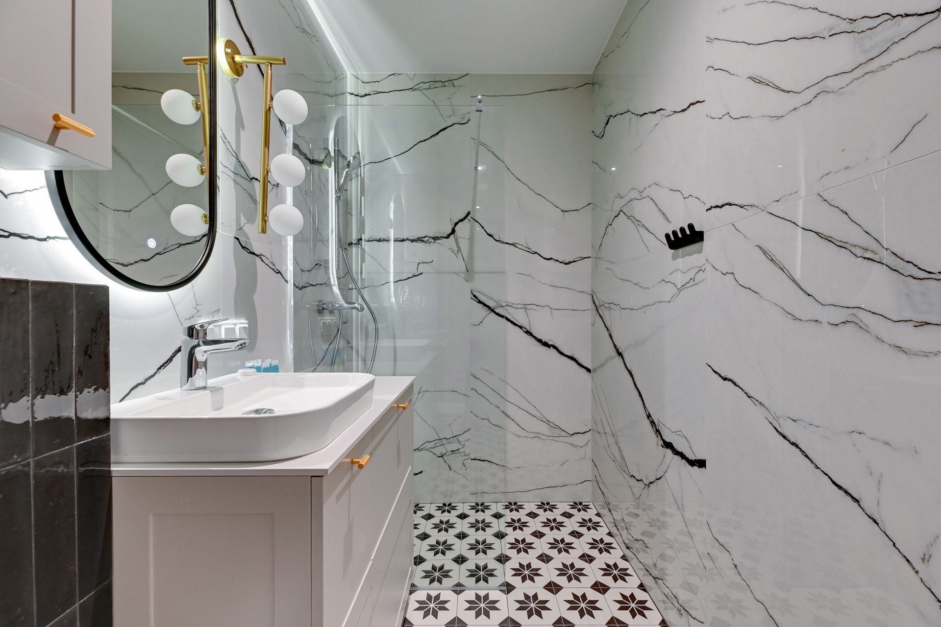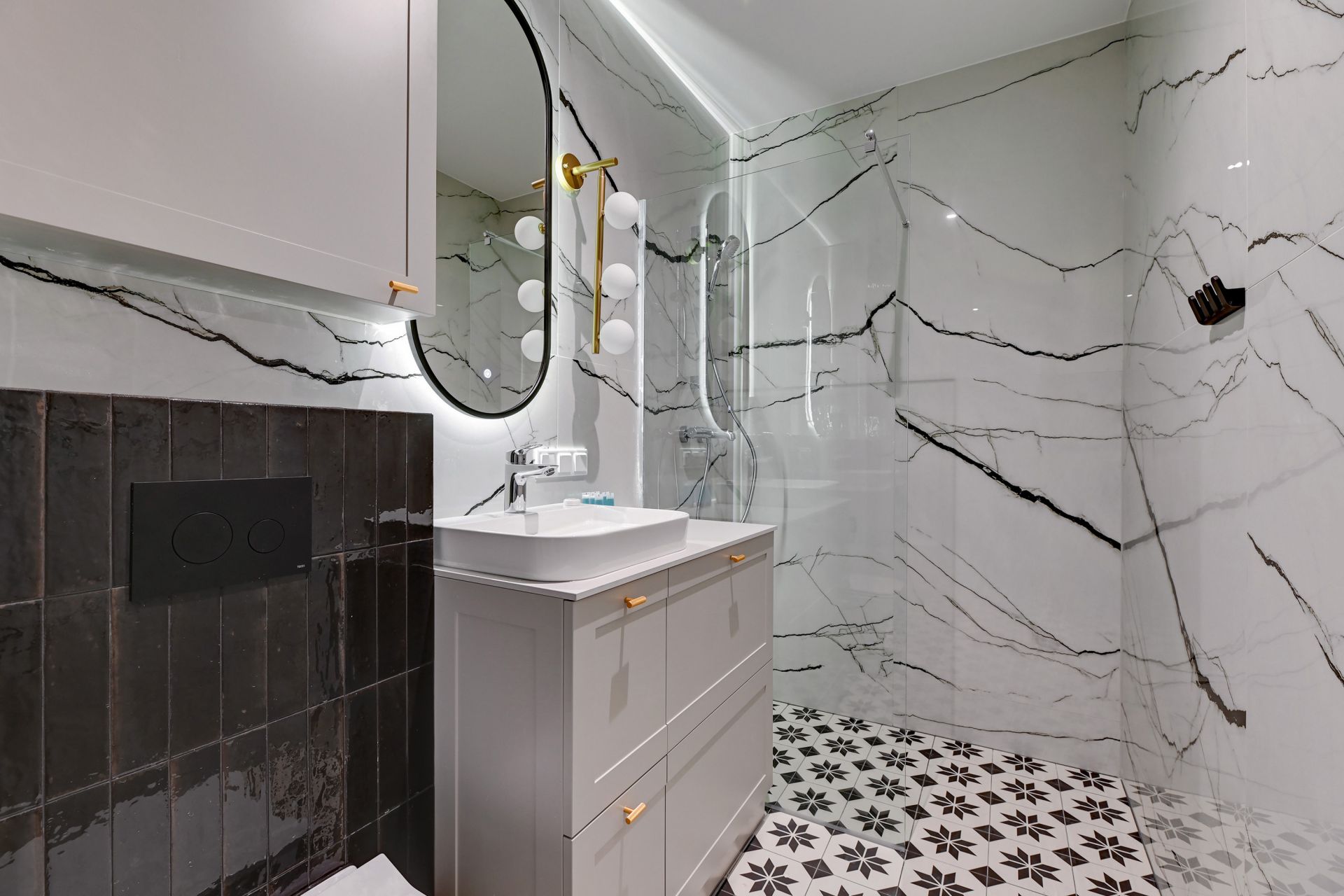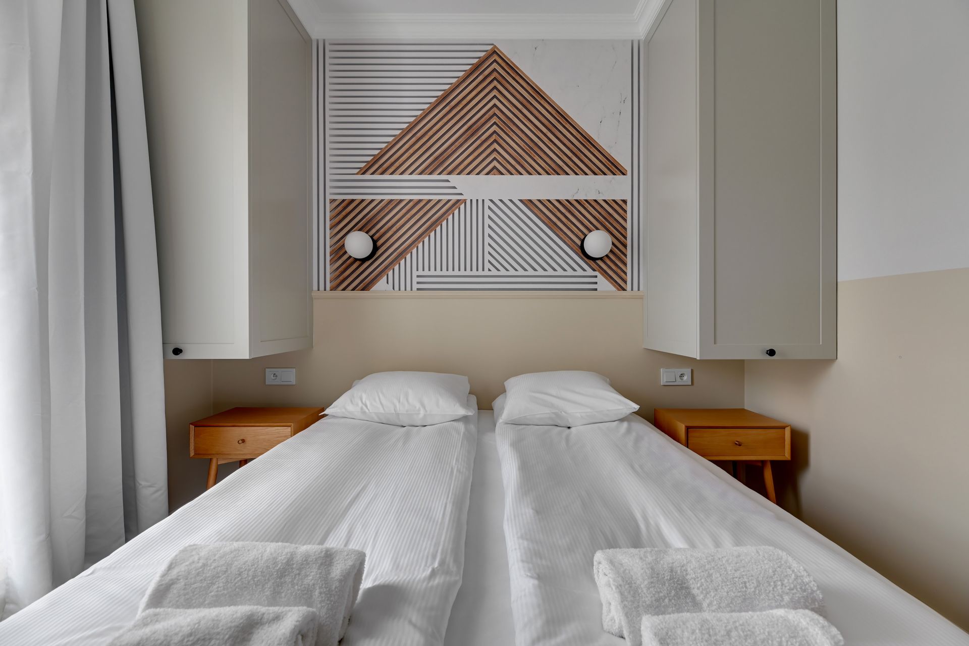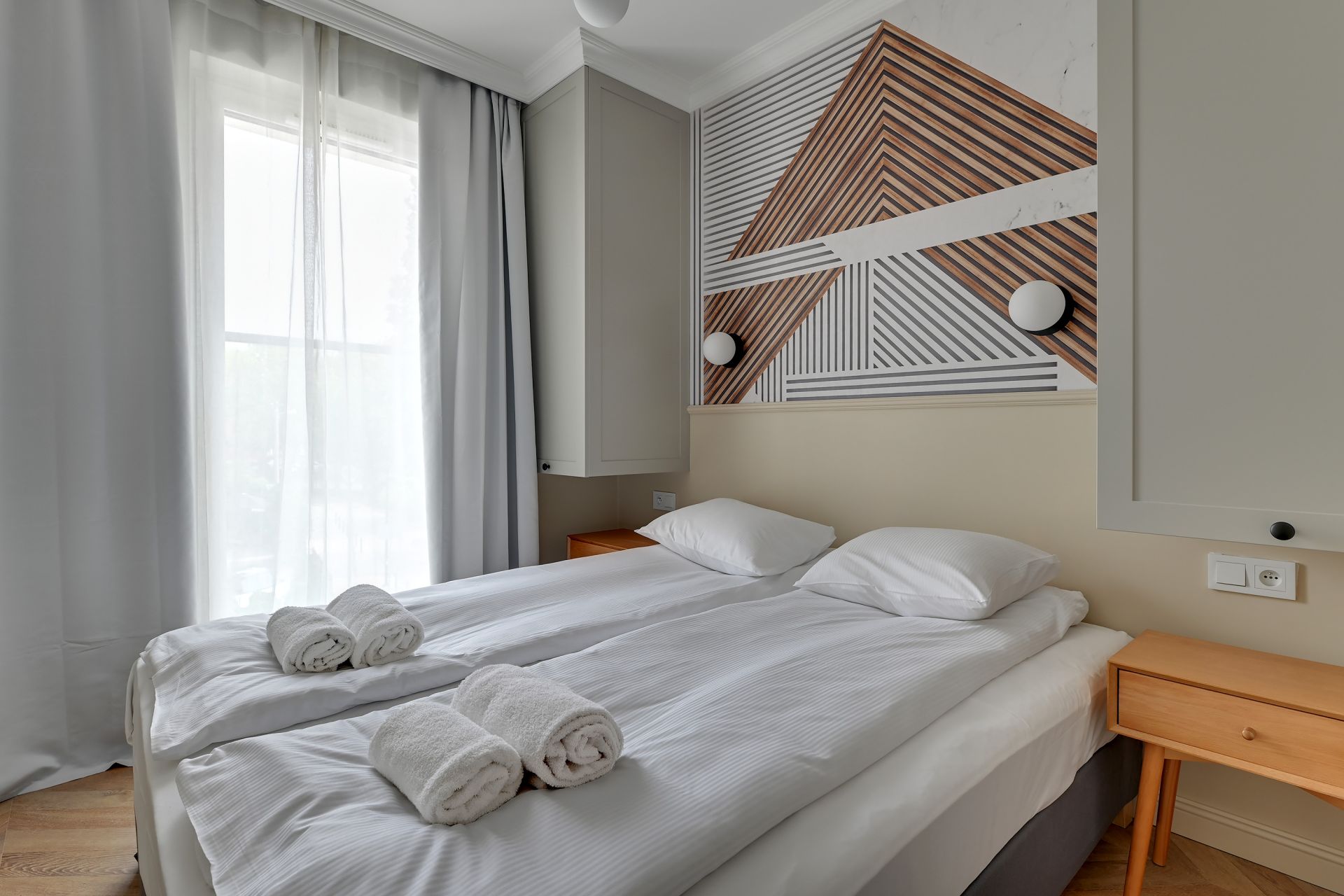 Nasze dwie sypialnie, każda z wygodnym łóżkiem małżeńskim, zapewnią Ci spokojny sen. Elegancka łazienka, wyposażona w przestronny prysznic i pralkę, dopełnia komfort pobytu.