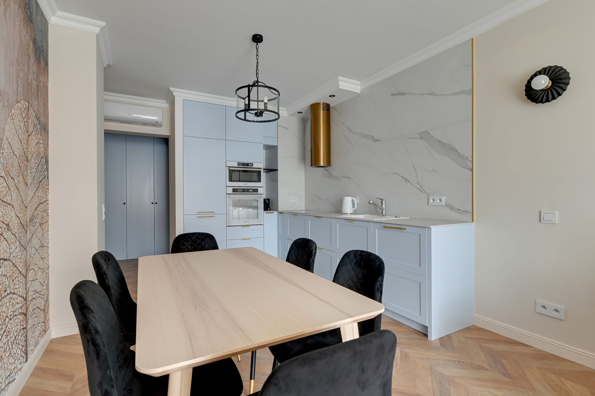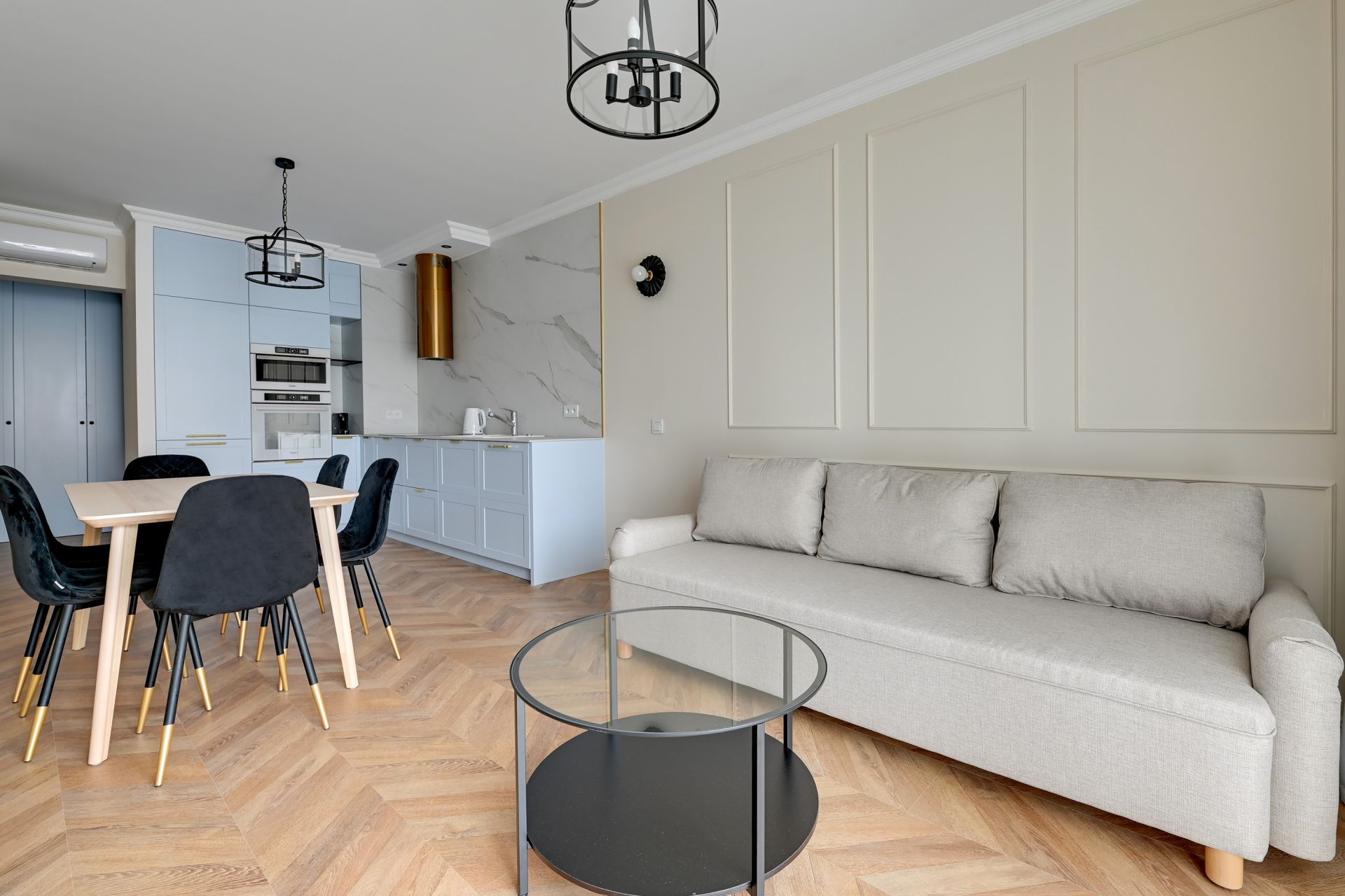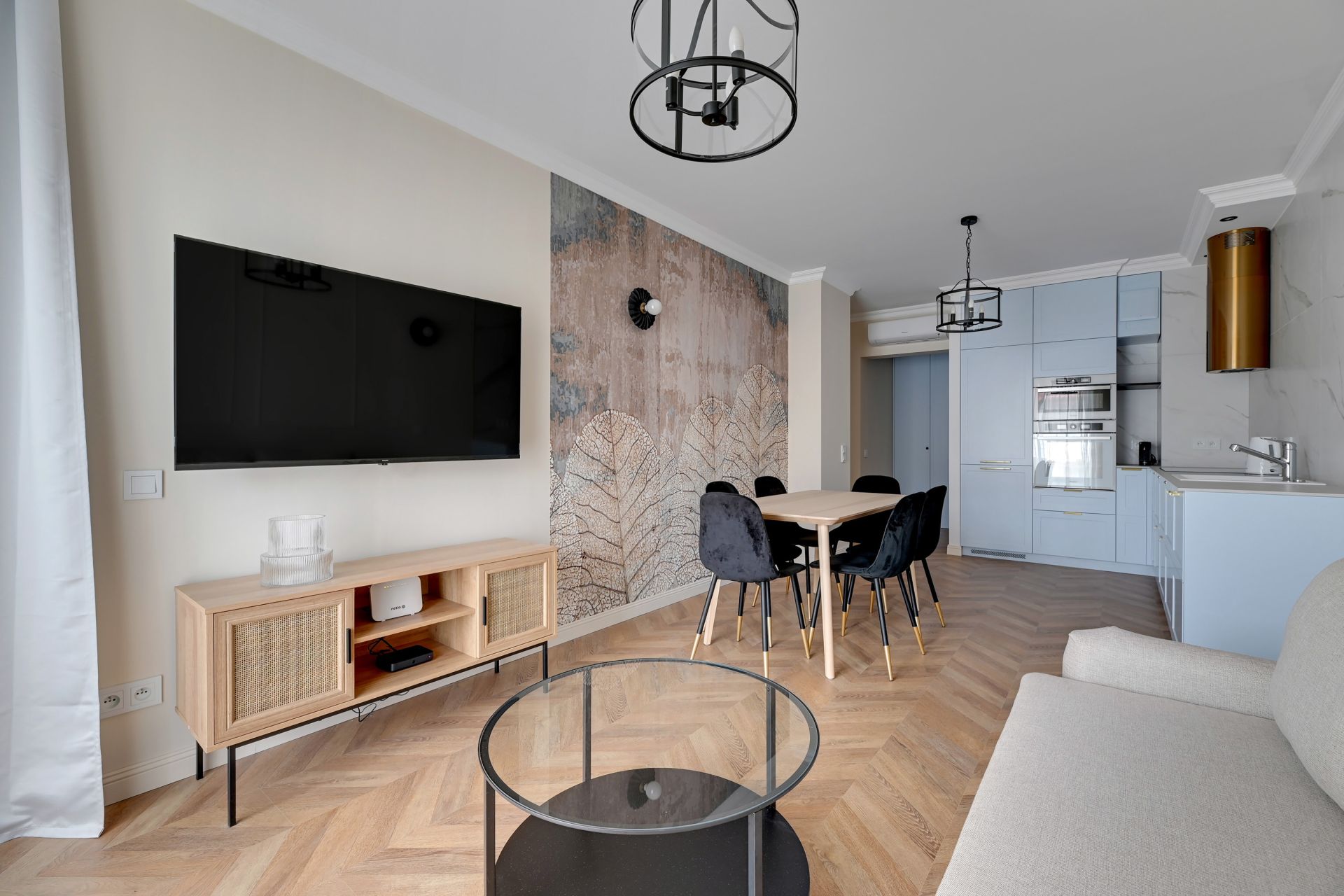 Wypocznij na wygodnej, rozkładanej sofie przy oglądaniu ulubionych programów na smart TV. W pełni wyposażony aneks kuchenny pozwoli Ci przygotować pyszne posiłki, a słoneczny balkon będzie idealnym miejscem na poranną kawę lub wieczorny relaks.
