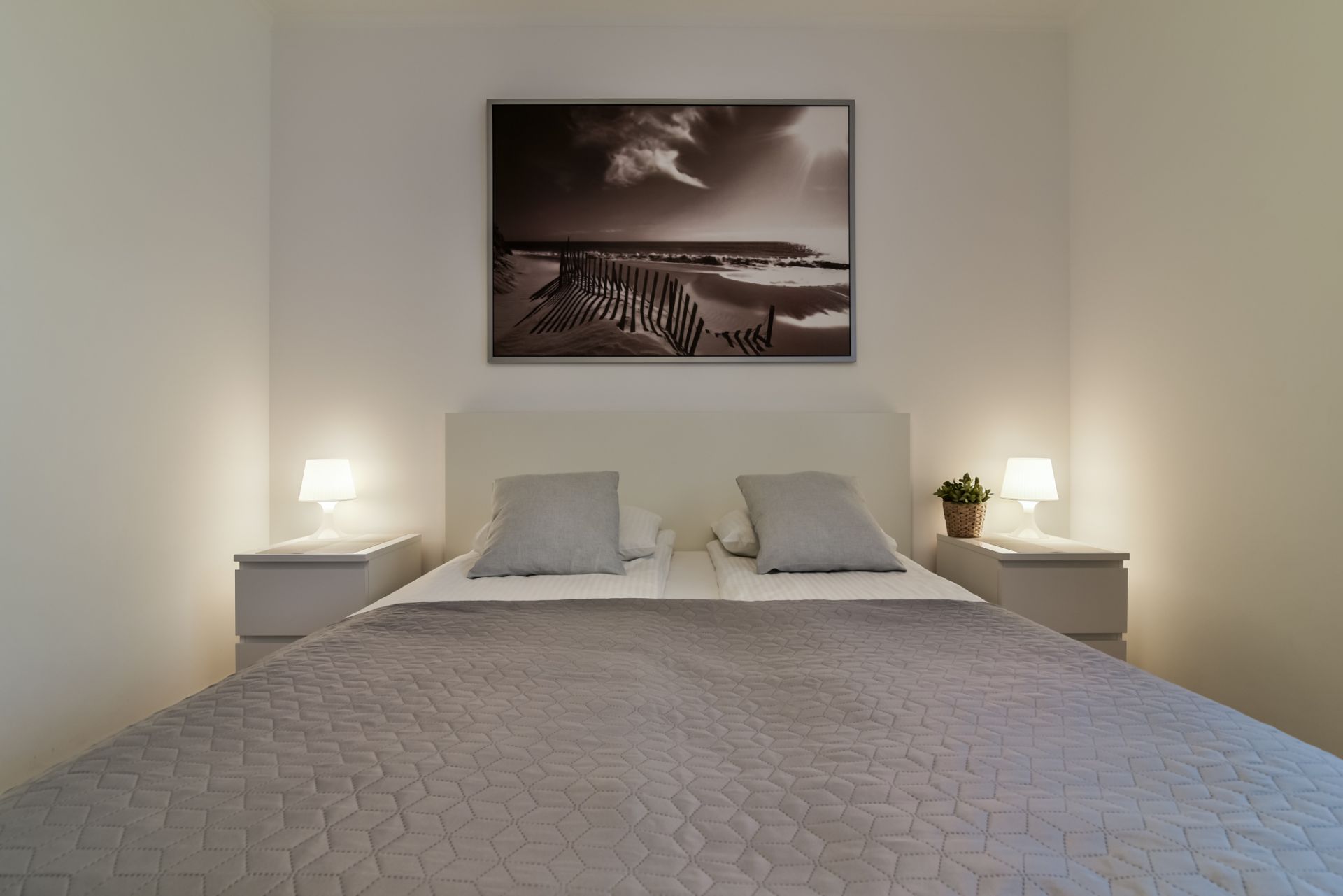 Apartament numer 7 w Gdańsku przy ulicy Malczewskiego składa się z dwóch sypialni oraz salonu połączonego z aneksem kuchennym. Miodowe dodatki oraz elementy drewna sprawiają, że mieszkanie jest ciepłe i przytulne. W sypialniach króluje najmodniejsza od kilku sezonów, stonowana szarość. Mieszkanie przeznaczone jest dla maksymalnie 6 osób.