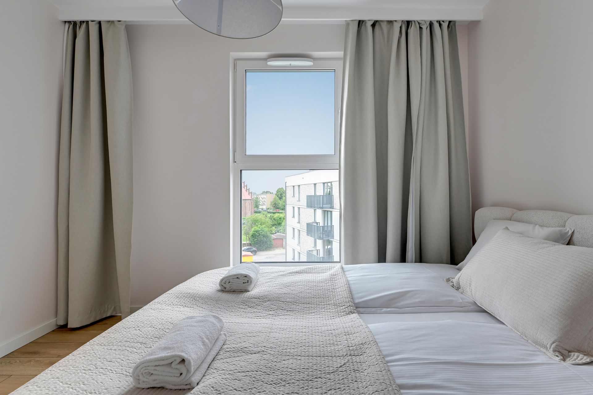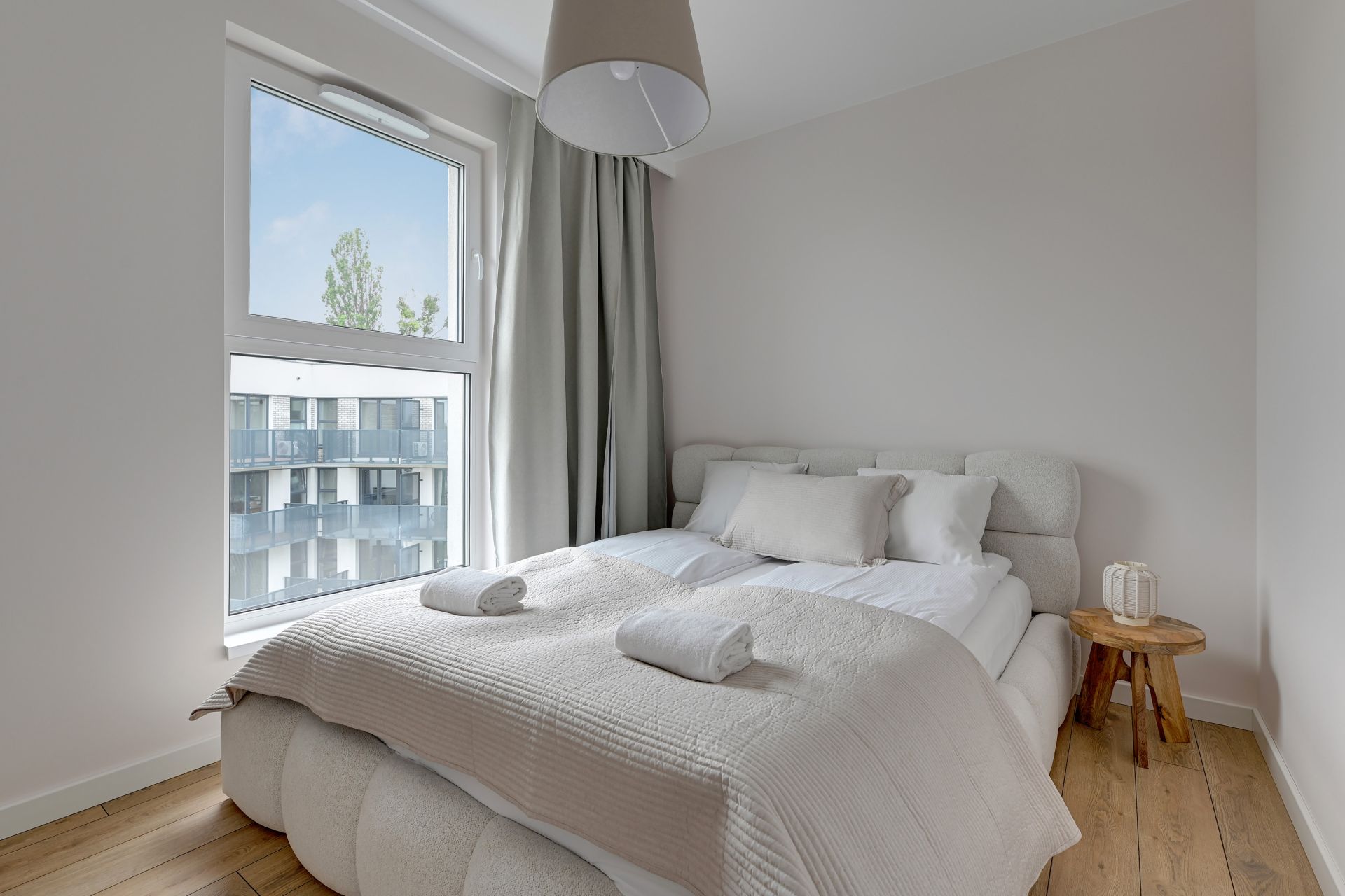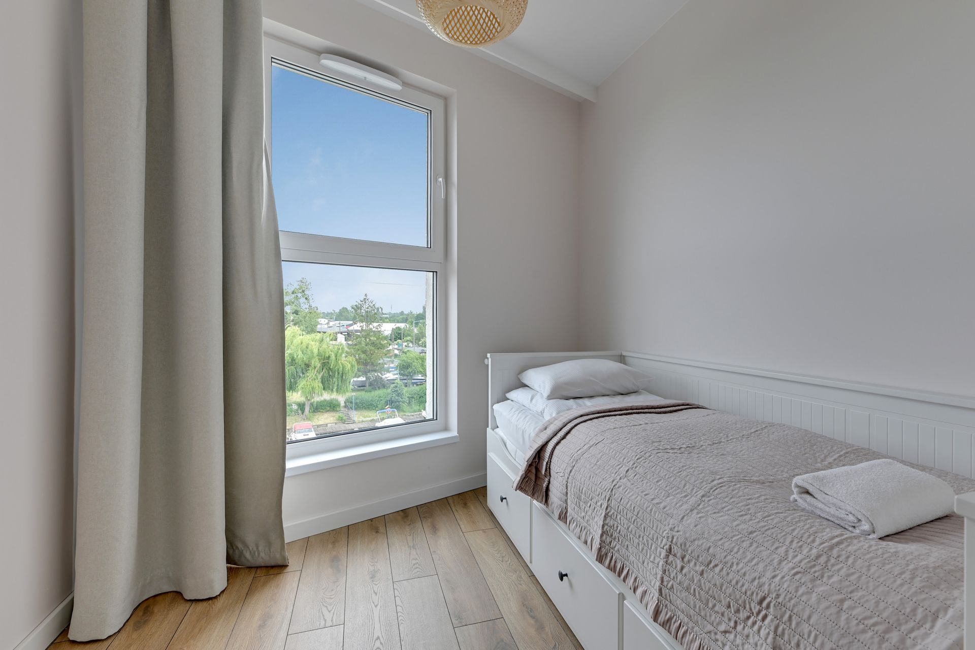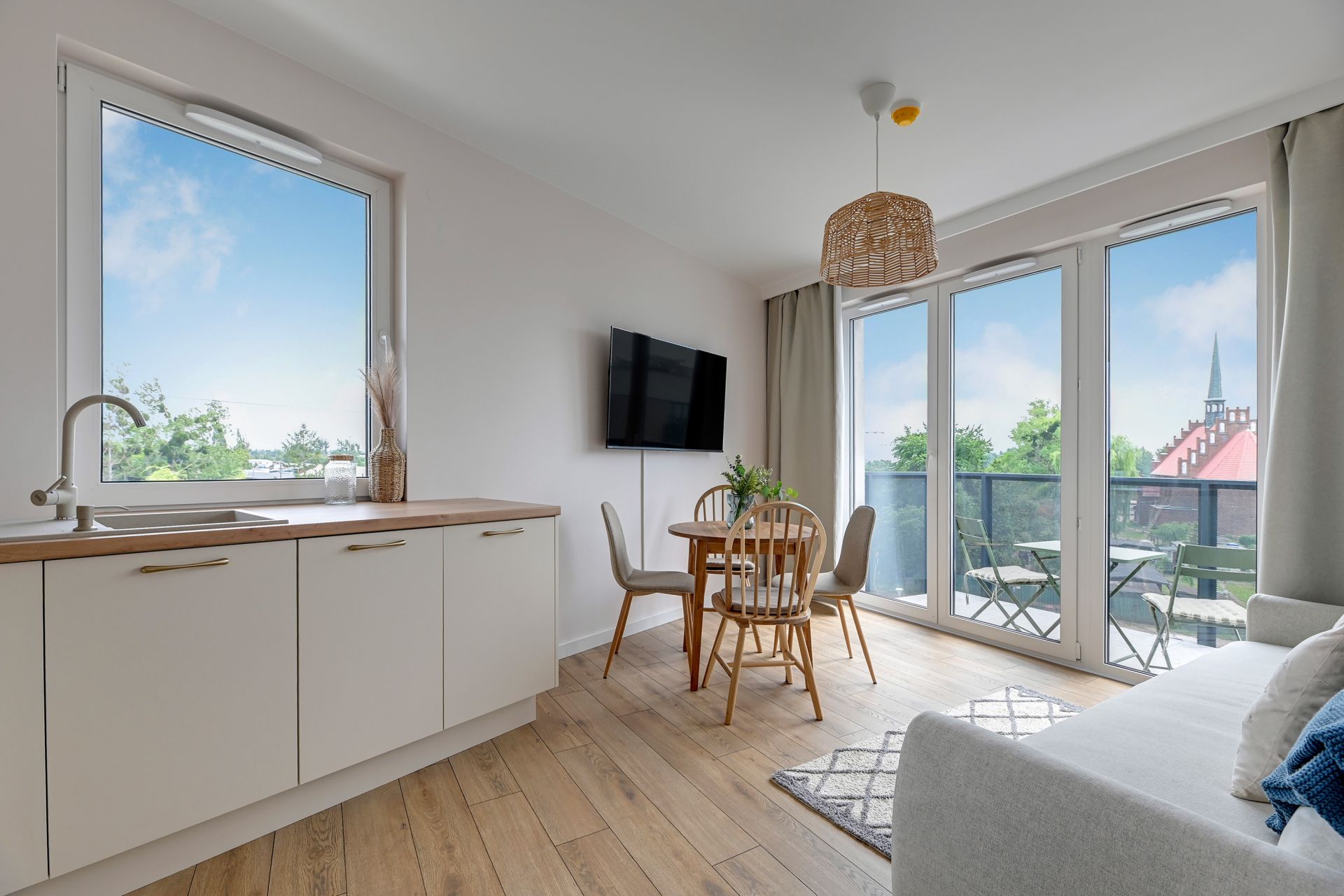 Niewątpliwym atutem apartamentu jest prywatny balkon, z którego rozciąga się zachwycający widok na malowniczy kanał/rzekę i pobliską marinę. Wyposażony w stolik i krzesła, jest idealnym miejscem na poranną kawę, śniadanie z widokiem czy wieczorny relaks z dala od zgiełku.