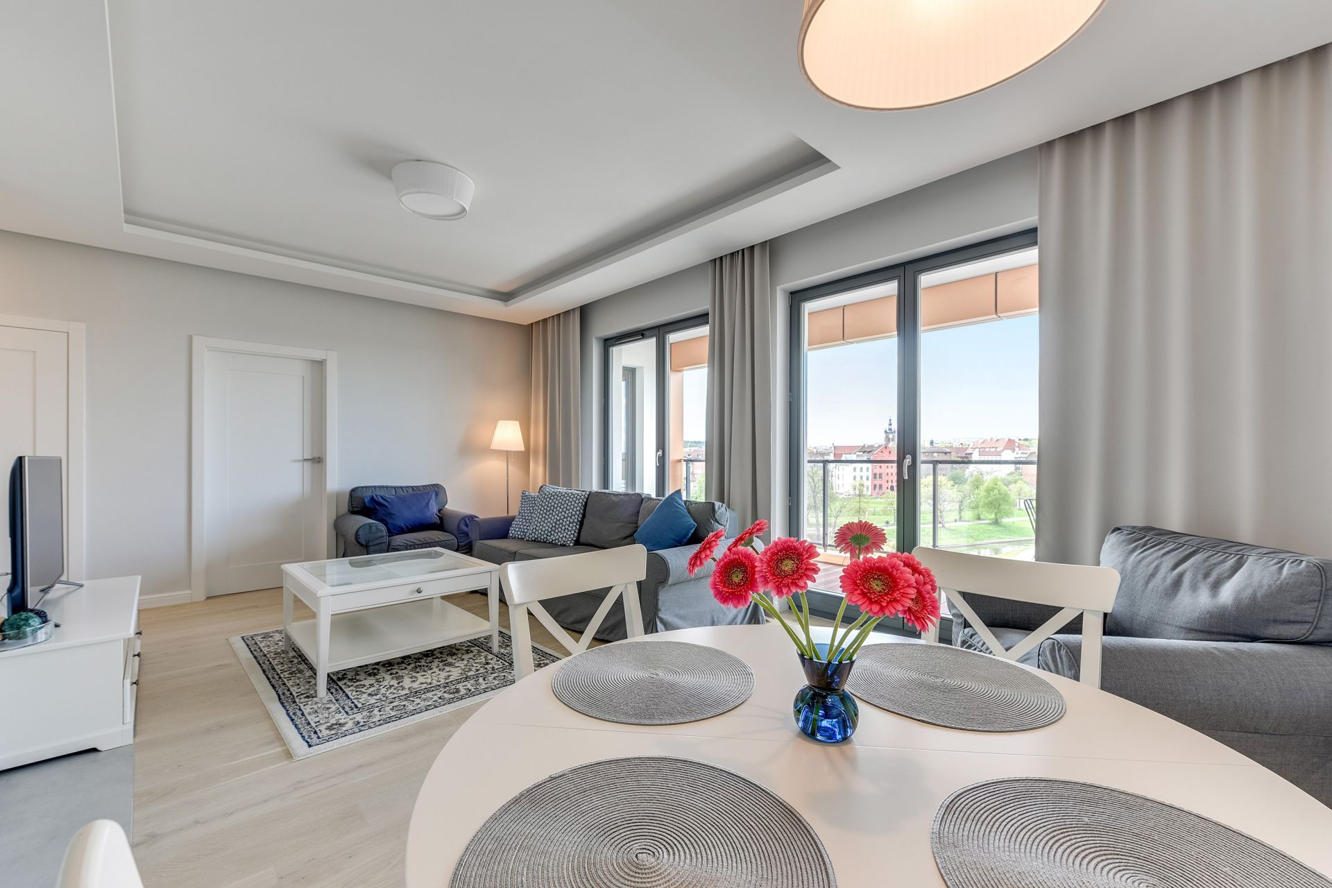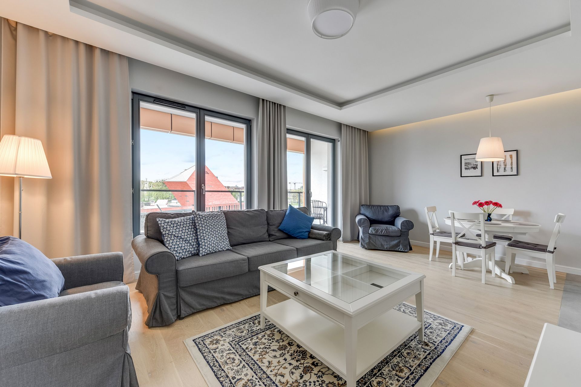 Ekskluzywny dwupokojowy apartament zlokalizowany w bardzo prestiżowej części Starego Miasta. Apartament znajduje się w pobliżu rzeki Motława, Polskiej Filharmonii Bałtyckiej, Mariny. W sąsiedztwie liczne restauracje i obiekty kulturowe. Apartament składa się z salonu z aneksem kuchennym, niezależnej sypialni (w sypialni dwuosobowe łóżko), łazienki z prysznicem. Apartament z balkonem. W salonie rozkładana, dwuosobowa sofa. Apartament przyjemny zarówno dla rodziny jak i dla grupki przyjaciół.