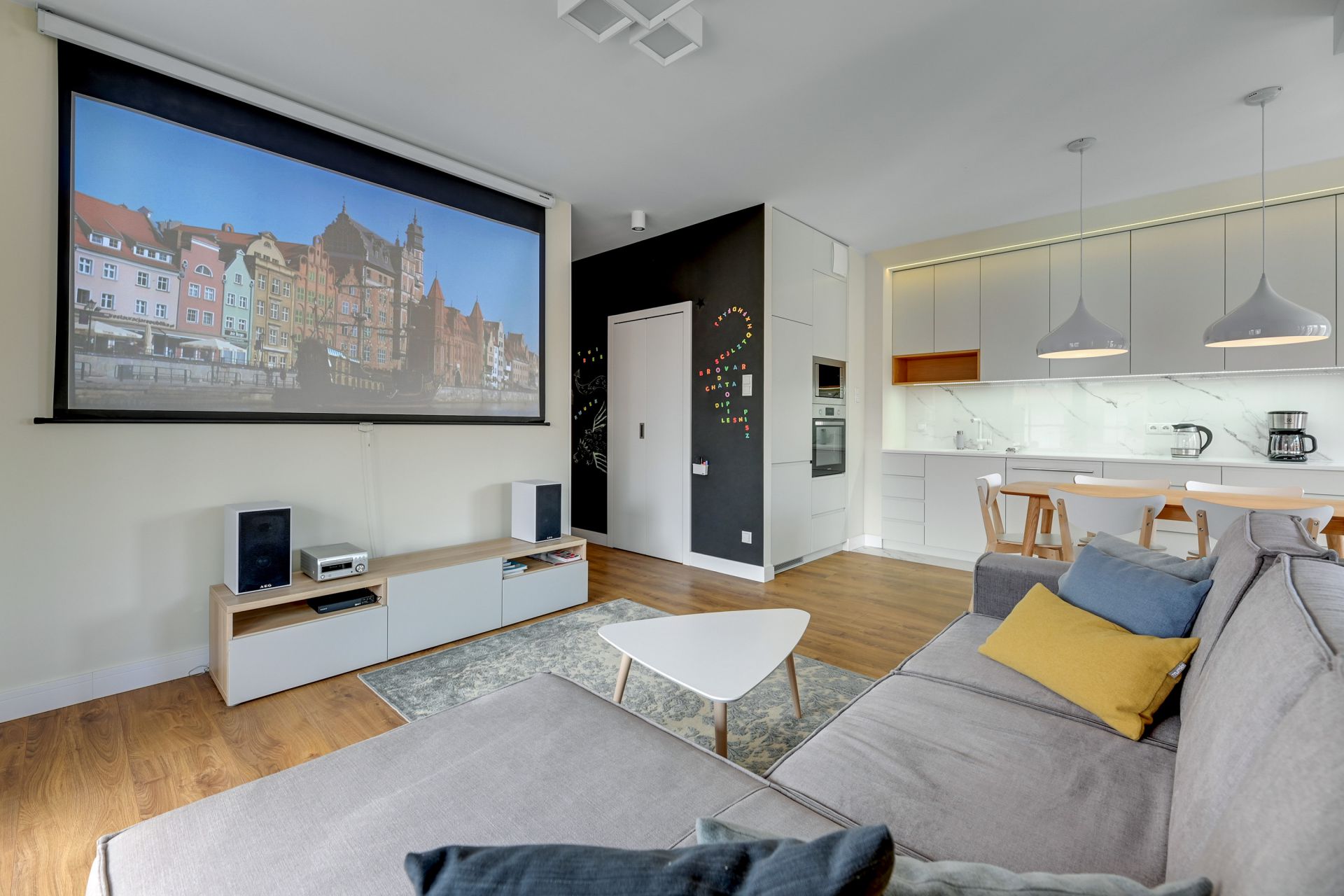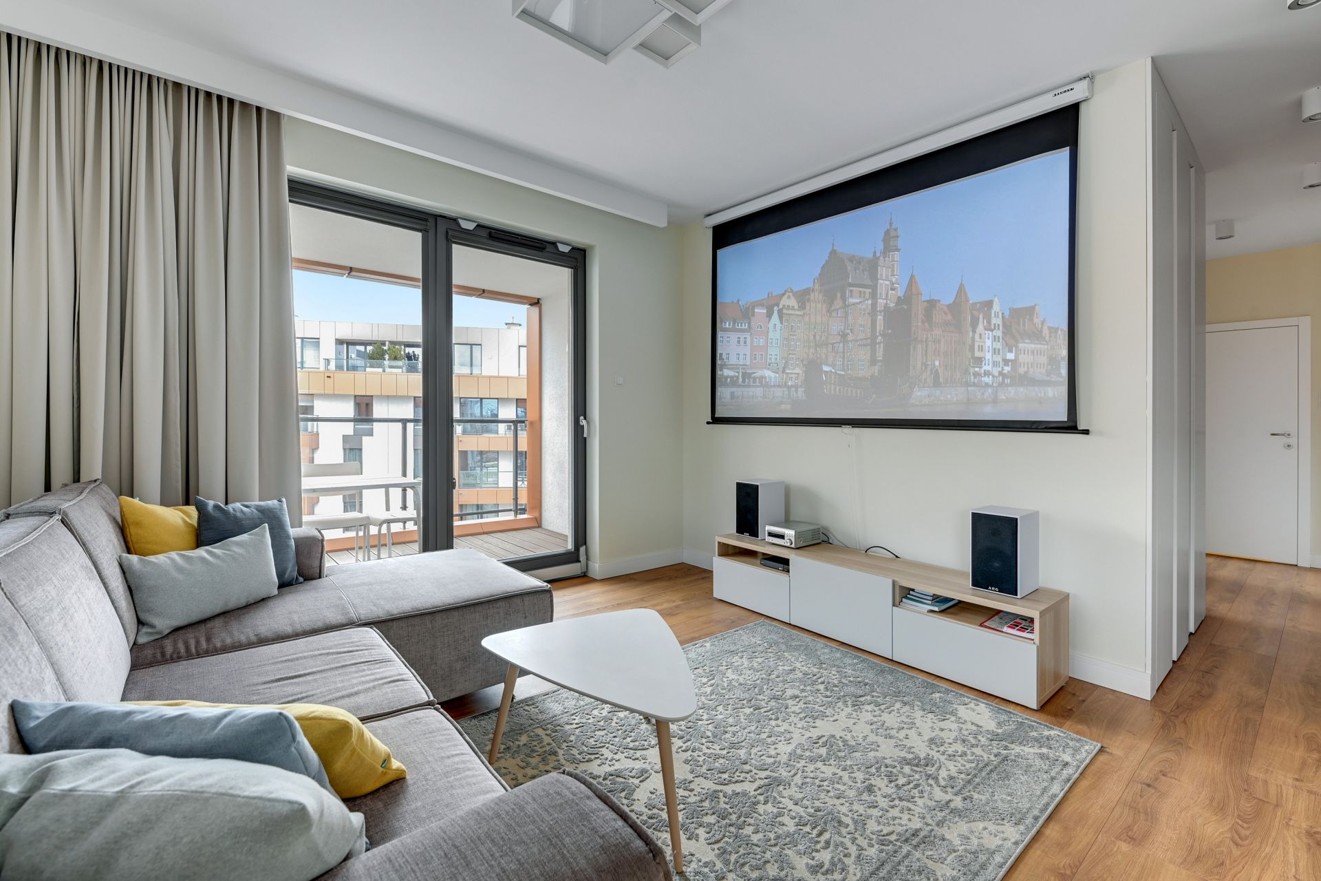 Wyjątkowy apartament zlokalizowany w bardzo prestiżowej części Starego Miasta. Apartament znajduje się w pobliżu rzeki Motława, Polskiej Filharmonii Bałtyckiej, Mariny. W sąsiedztwie liczne restauracje i obiekty kulturowe. Apartament składa się z salonu z aneksem kuchennym, niezależnej sypialni (w sypialni dwuosobowe łóżko), pokoju z łóżkiem piętrowym, łazienki z wanną i prysznicem oraz osobnej toalety. Dodatkowo do dyspozycji gości miejsce parkingowe w prywatnej hali garażowej (wliczone w cenę wynajmu).