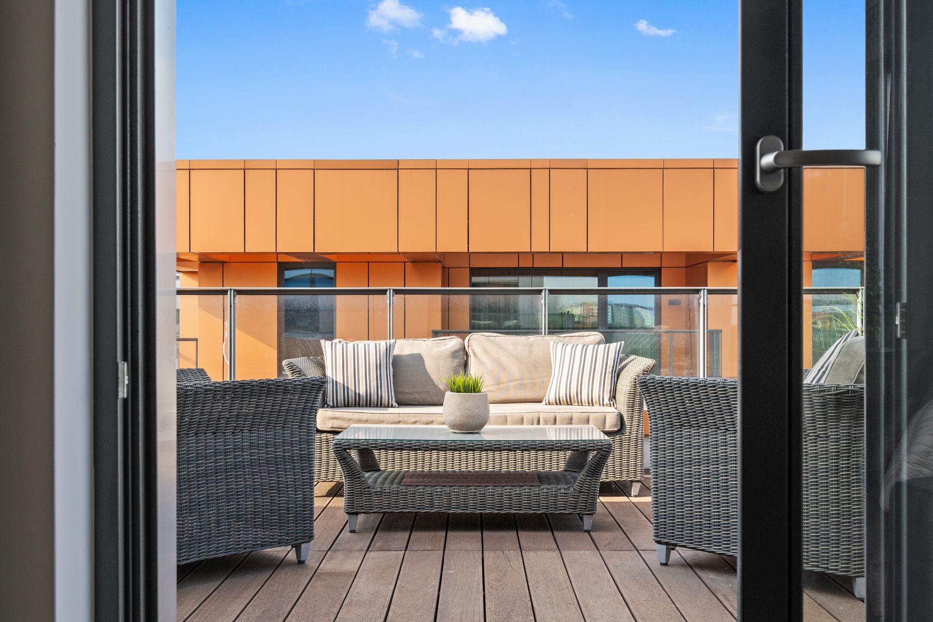Największym atutem jest przestronny, prywatny taras. To Twoja luksusowa strefa relaksu na świeżym powietrzu z wyjątkowym widokiem – z tarasu doskonale widać historyczne dźwigi Stoczni, Motławę oraz część Starego Miasta. Jest to idealne miejsce na podziwianie zachodów słońca i odpoczynek.