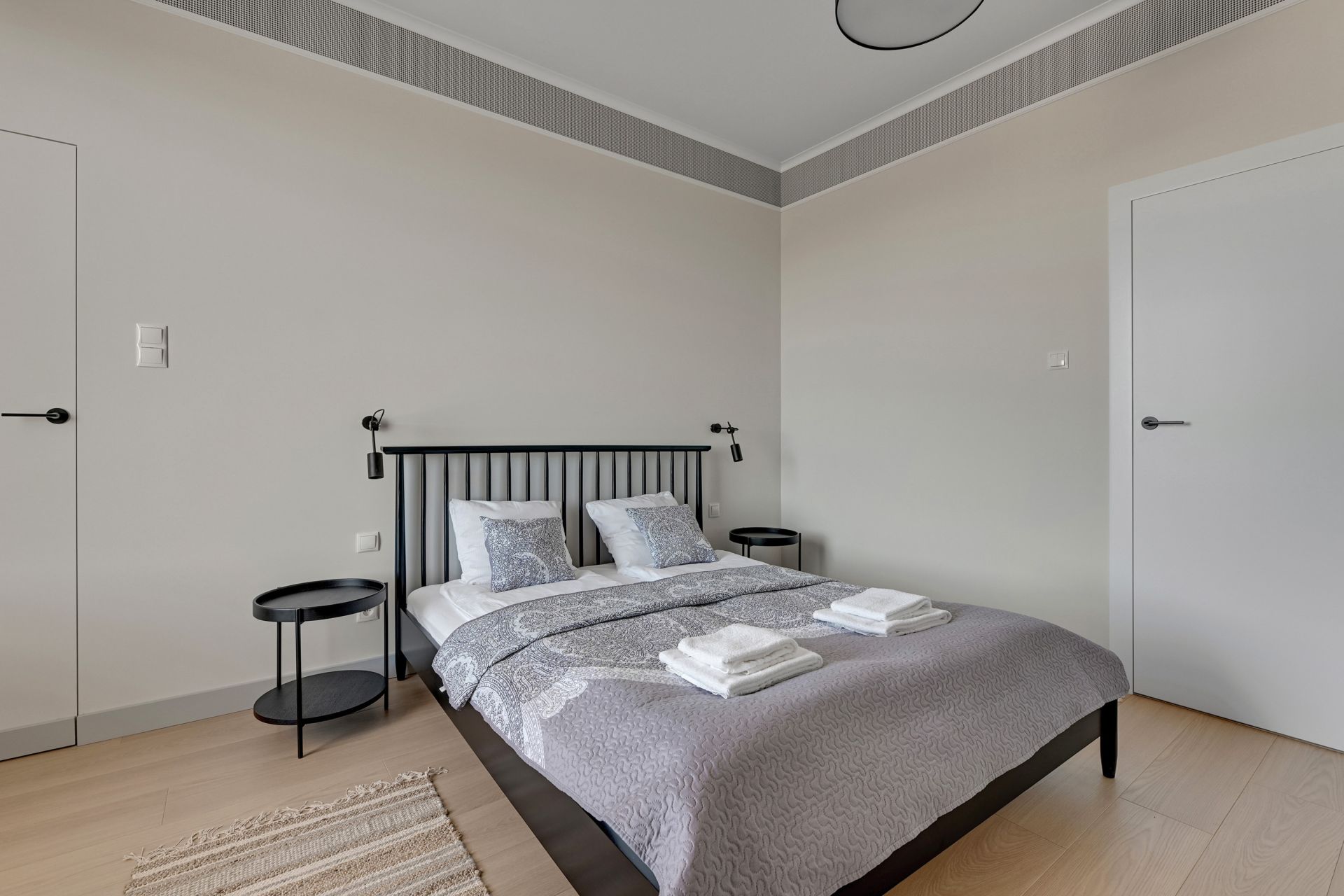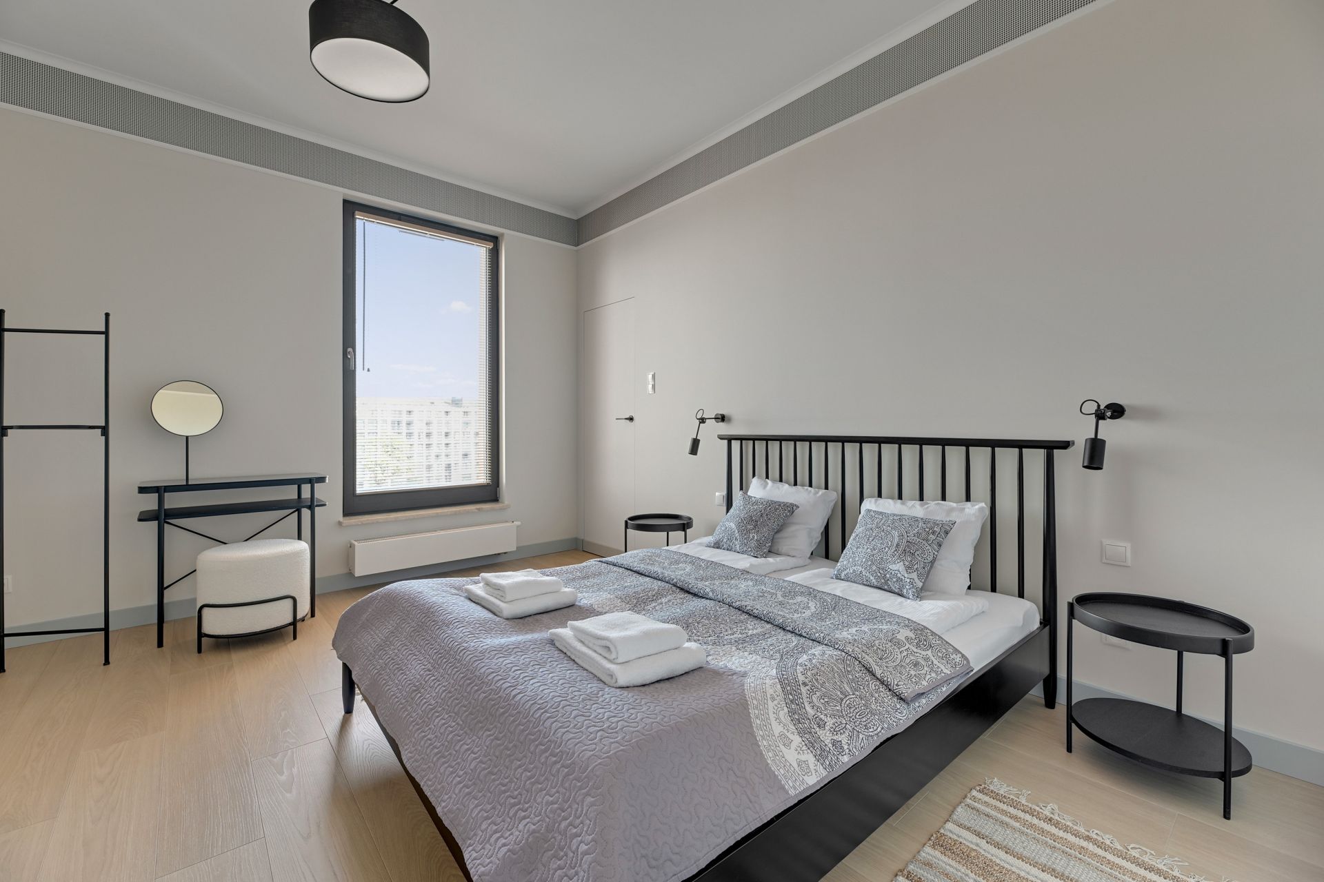 W sypialni czeka na Ciebie wygodne, duże łóżko, które zapewni Ci spokojny sen po całym dniu zwiedzania. Jasne kolory i miękkie tekstylia sprawiają, że wnętrze jest niezwykle relaksujące.