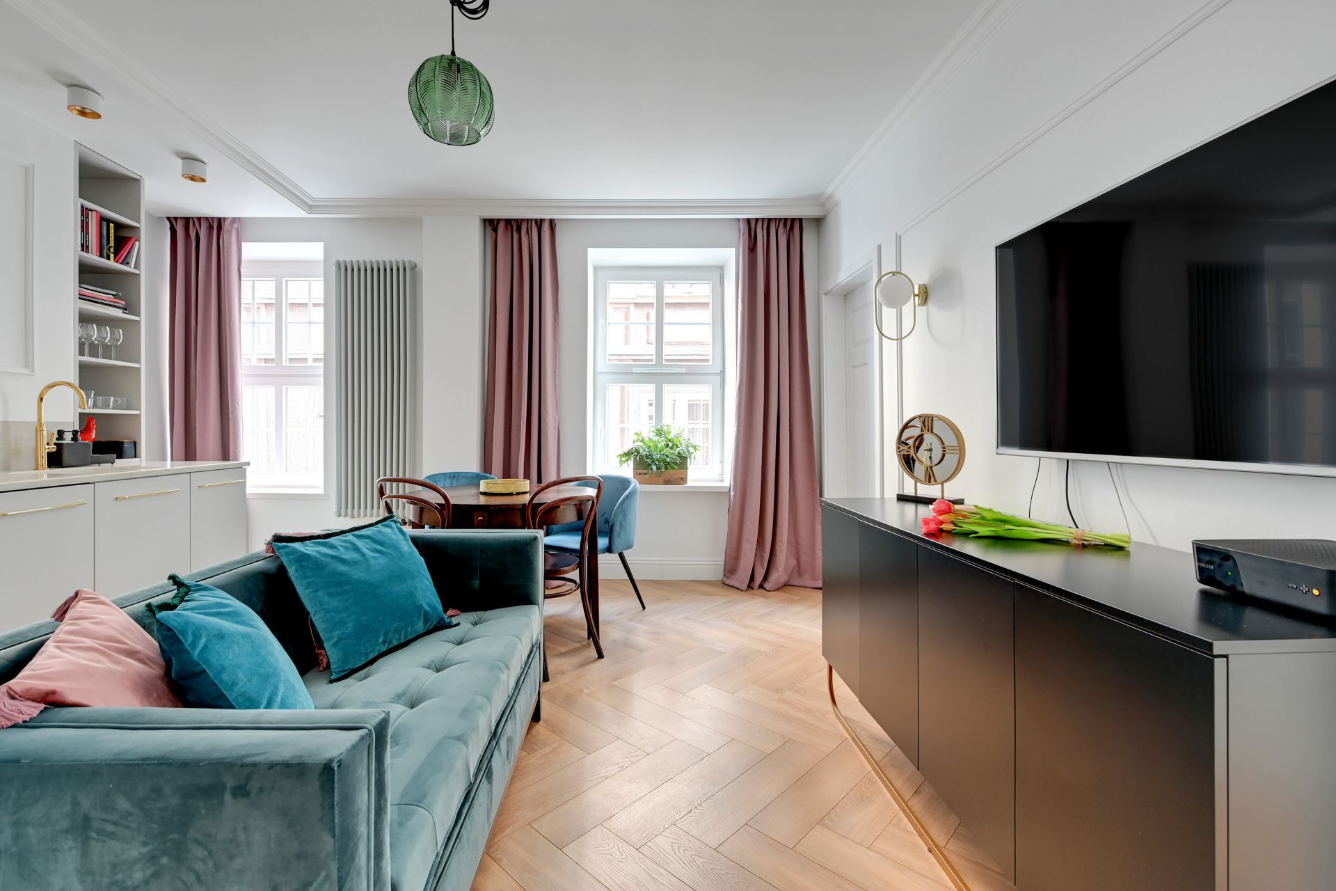 Elegancki apartament, położony w samym sercu starego Gdańska. Spełni oczekiwania wymagających, lubiących design mieszkańców. Jest funkcjonalny i komfortowy. Wygodne, podwójne łóżka w dwóch odrębnych sypialniach gwarantują intymność dla rodziny z dziećmi albo grupy przyjaciół. Dobrze wyposażona kuchnia, umożliwia przygotowanie śniadań i romantycznych kolacji. Wszędzie jest blisko: zabytki, muzea i restauracje są w zasięgu kilku kroków. To możliwie najlepszy adres w Gdańsku. Elegancja bez kompromisów!
