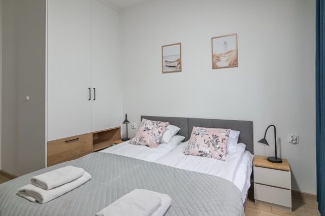 Pierwsza sypialnia wyposażona jest w duże, małżeńskie łóżko, natomiast w drugiej sypialni znajdują się dwa oddzielne, jednoosobowe łóżka – idealne rozwiązanie dla dzieci lub przyjaciół podróżujących razem.