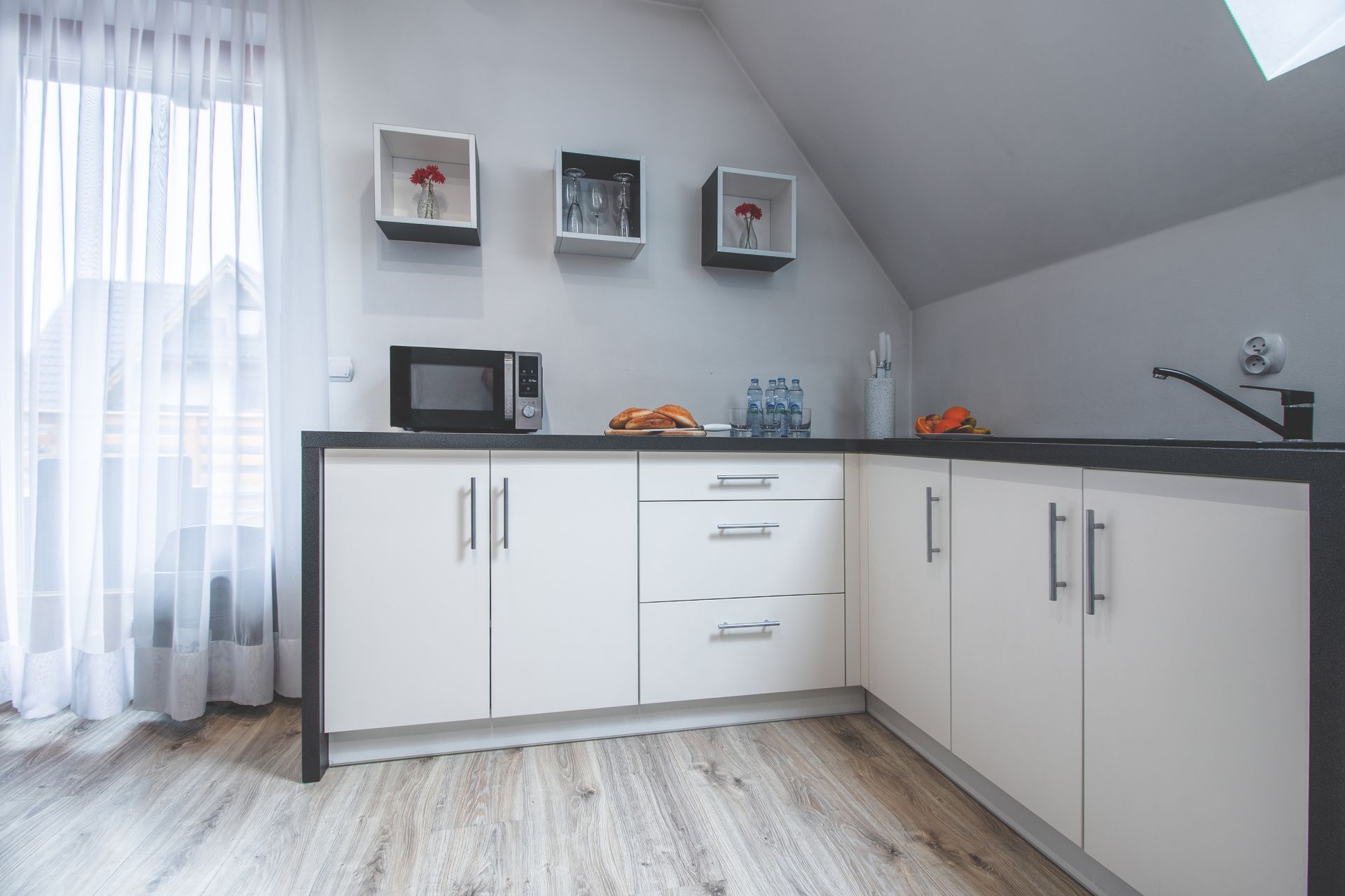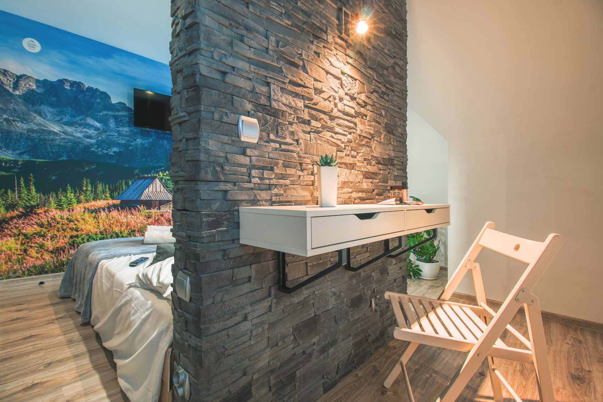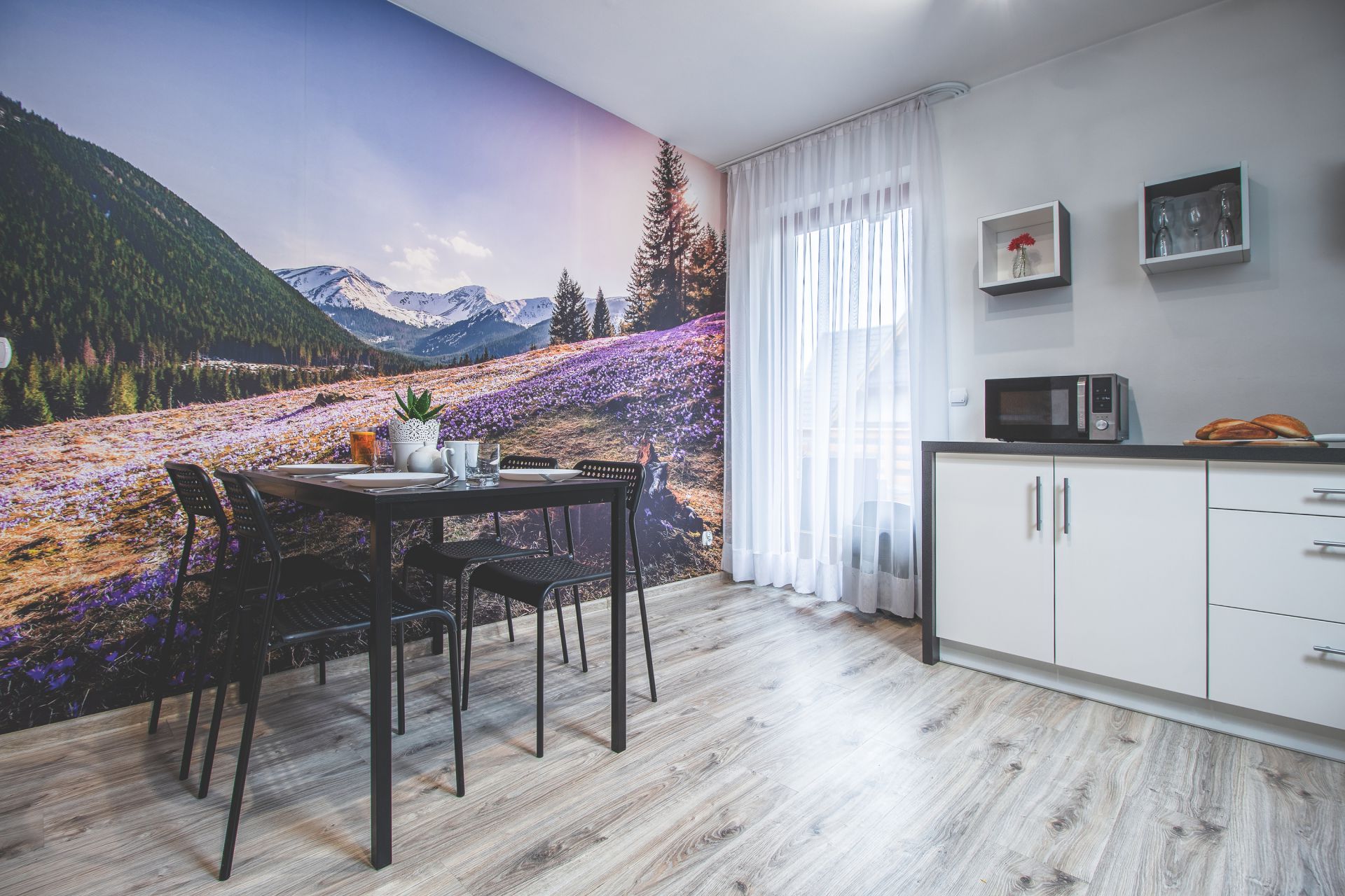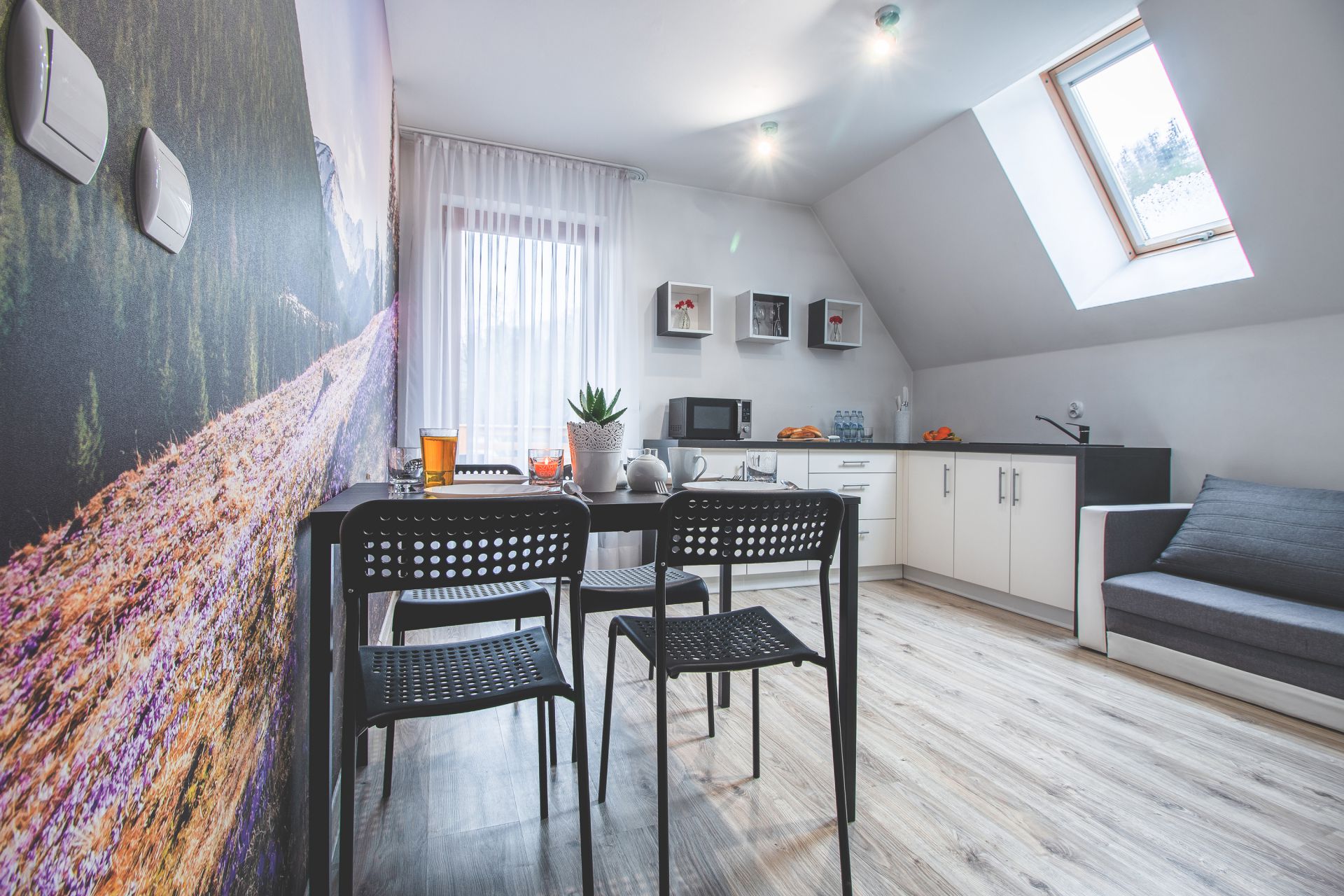 Wnętrze odgrywa tutaj niemałą rolę, nowoczesny styl na pewno będzie przyjemny dla oka. Połączenie bieli, szarości i drewna sprzyjają wypoczynkowi a także łączą w sobie naturalne górskie elementy z nowoczesnością i minimalizmem. Mamy nadzieję, że ten apartament będzie dla Państwa oazą spokoju oraz luksusowego wypoczynku na Podhalu.