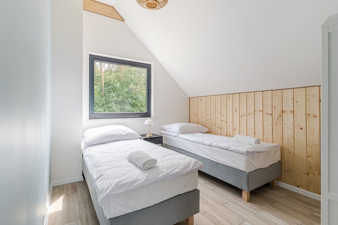 - Na piętrze: sypialnia 2: 2 łóżka pojedyncze 80cm (komoda, pościel, stolik, lampka nocna)- możliwość złączenia łóżek na życzenie