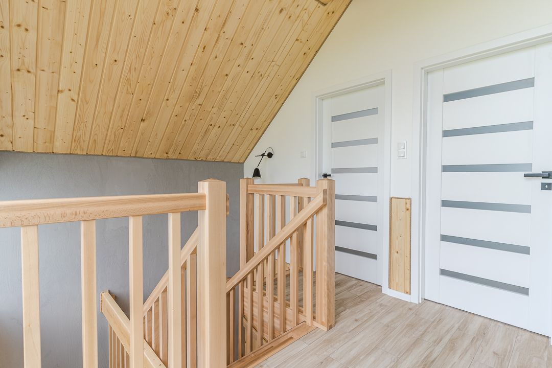 - Na piętrze: sypialnia 1: łóżko małżeńskie 160cm (komoda, pościel, stoliki, lampki nocne)