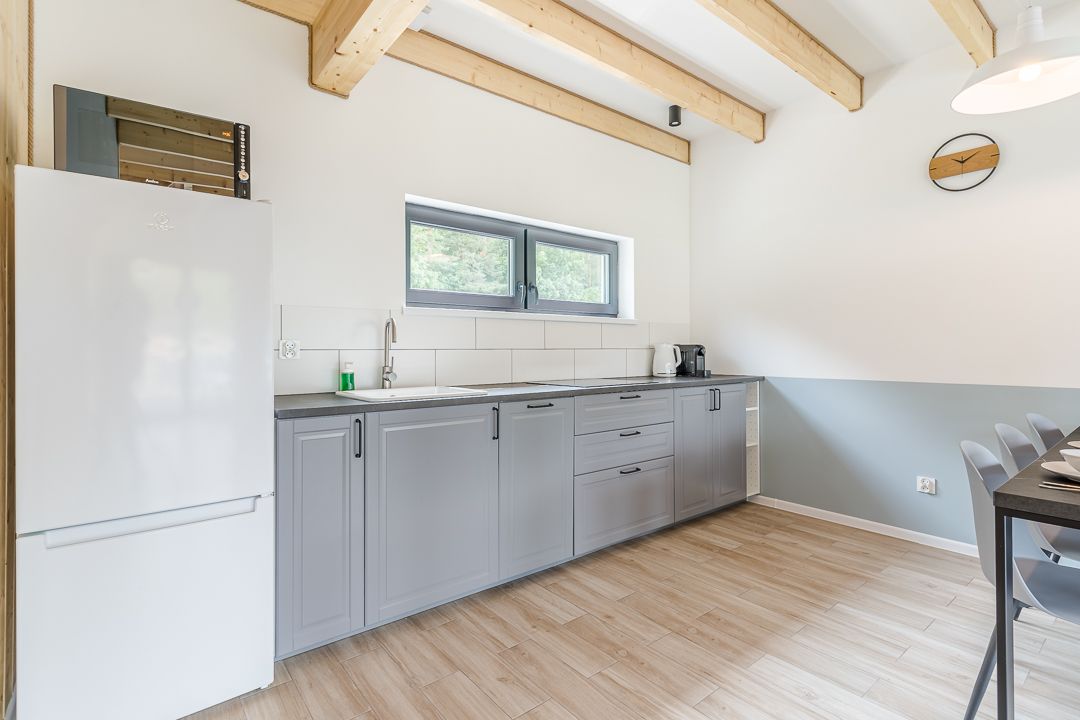 - W pełni wyposażona kuchnia z jadalnią (stół, 6 krzeseł), mikrofalówka, lodówka z zamrażarką, zmywarka, płyta kuchenna 4 palnikowa, garnki, patelnie, sztućce, deska do krojenia, płyn do naczyń, ściereczka kuchenna, zastawa stołowa. czajnik, ekspres do kawy z zestawem 10 kapsułek itp.