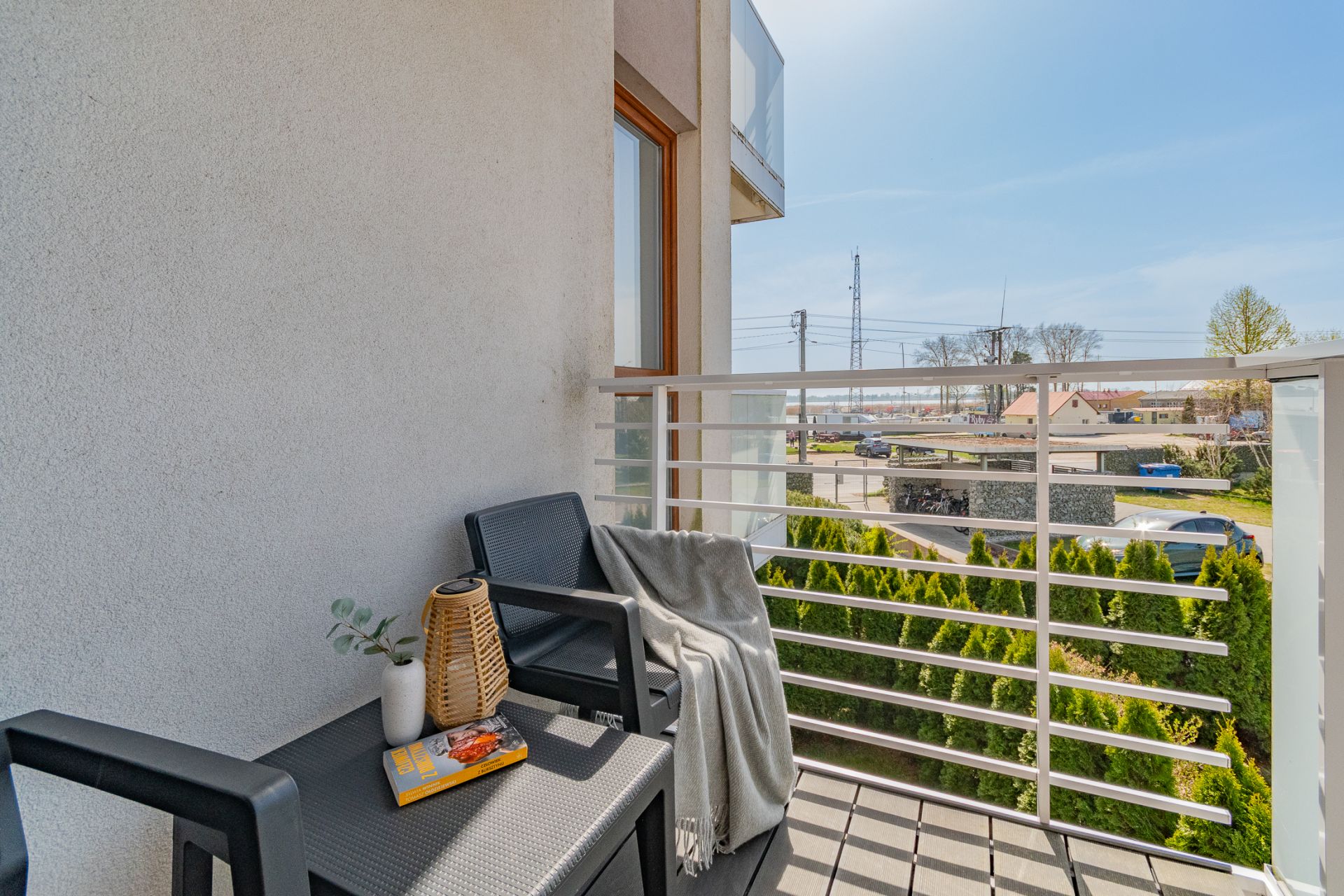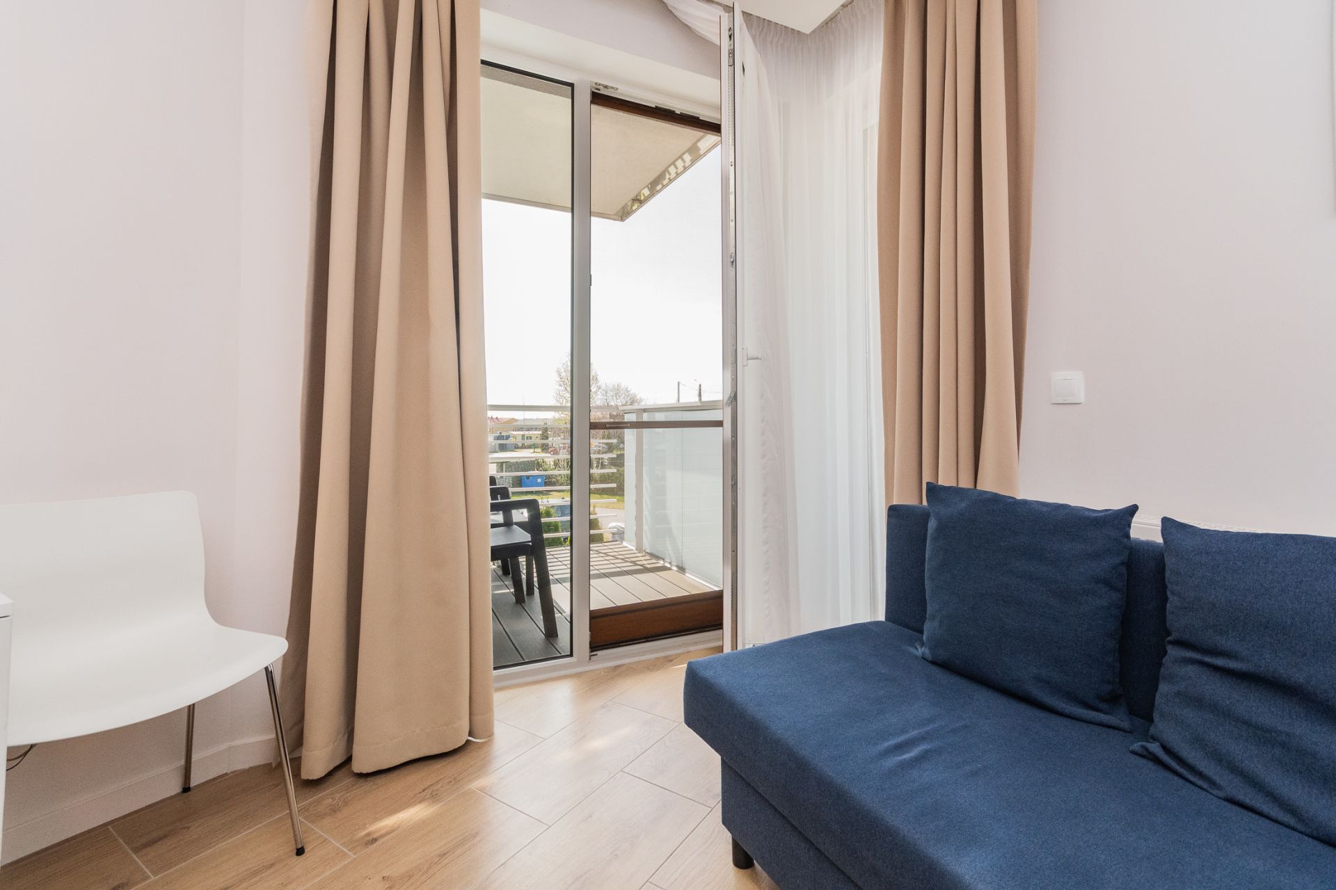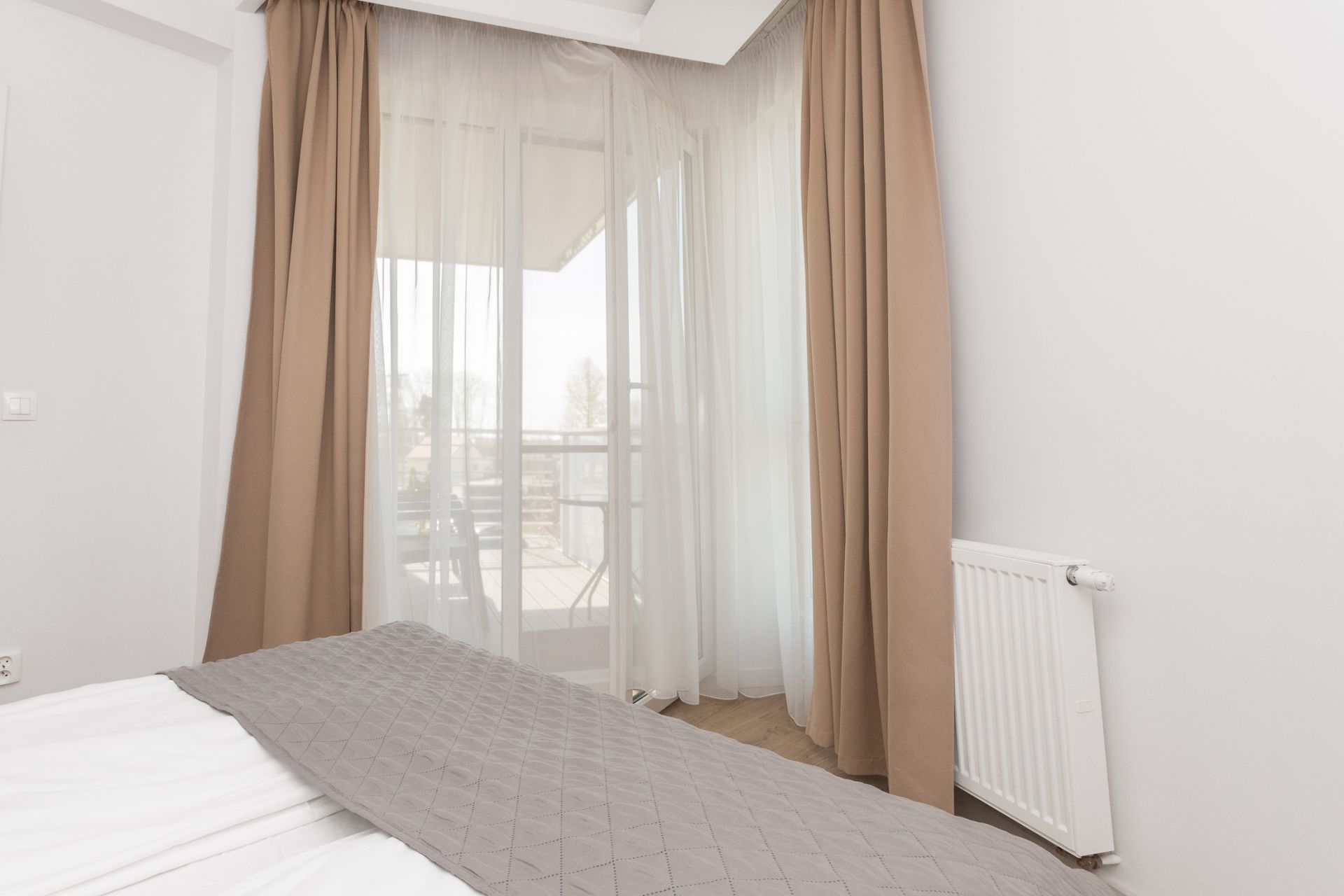 Wygodny apartament z oddzielną sypialnią, salonem, łazienką w której możemy znaleźć pralkę, aneksem kuchennym oraz balkonem, zajmuje powierzchnię 31m2. Dostępne są cztery miejsca noclegowe: w salonie rozkładana dwuosobowa kanapa oraz w sypialni łoże małżeńskie. W mieszkaniu panuje domowy nastrój. Apartament znajduje się na I piętrze. Do apartamentu przynależy 1 miejsce postojowe. W budynku znajduje się cichobieżna winda.
