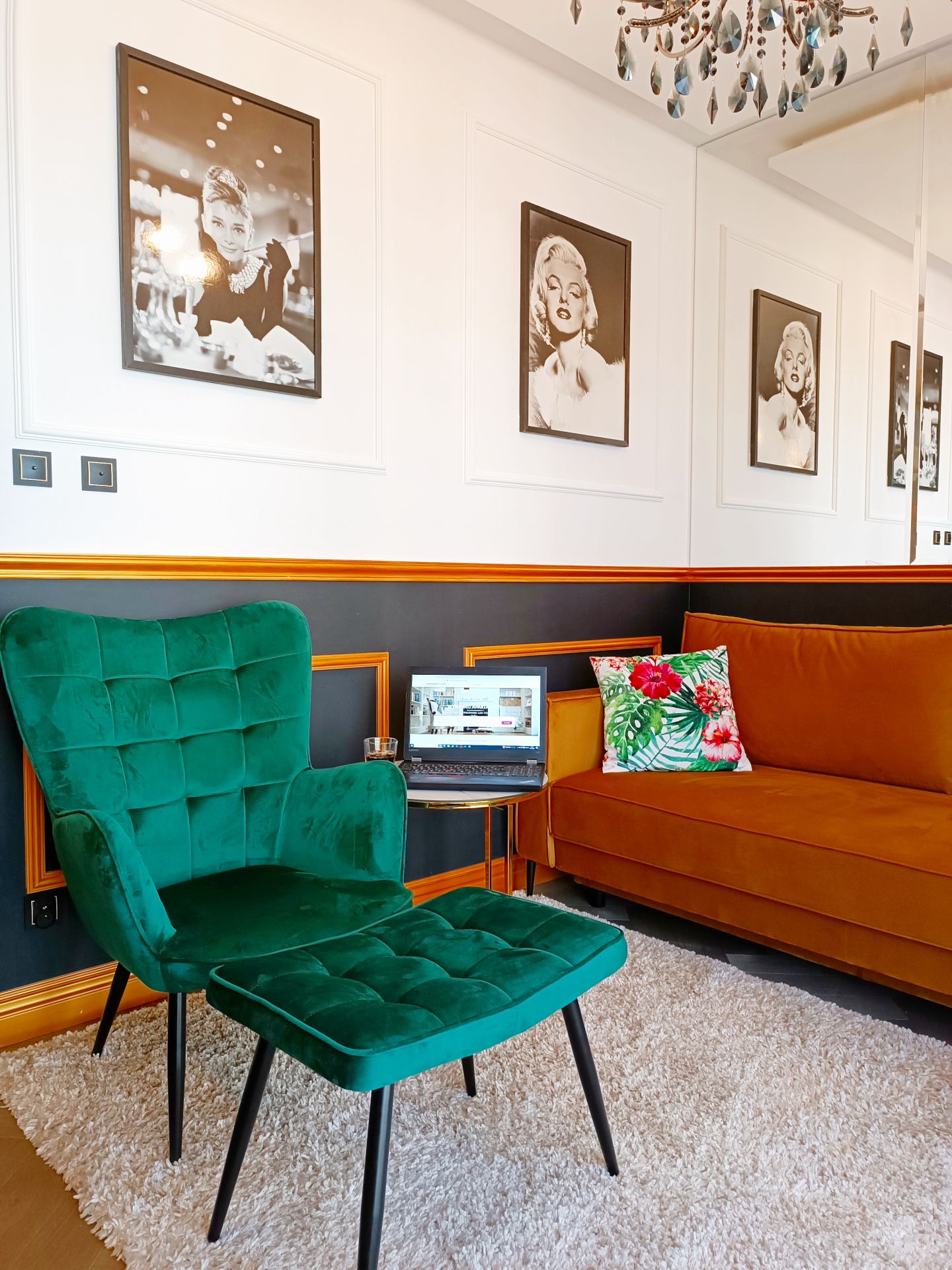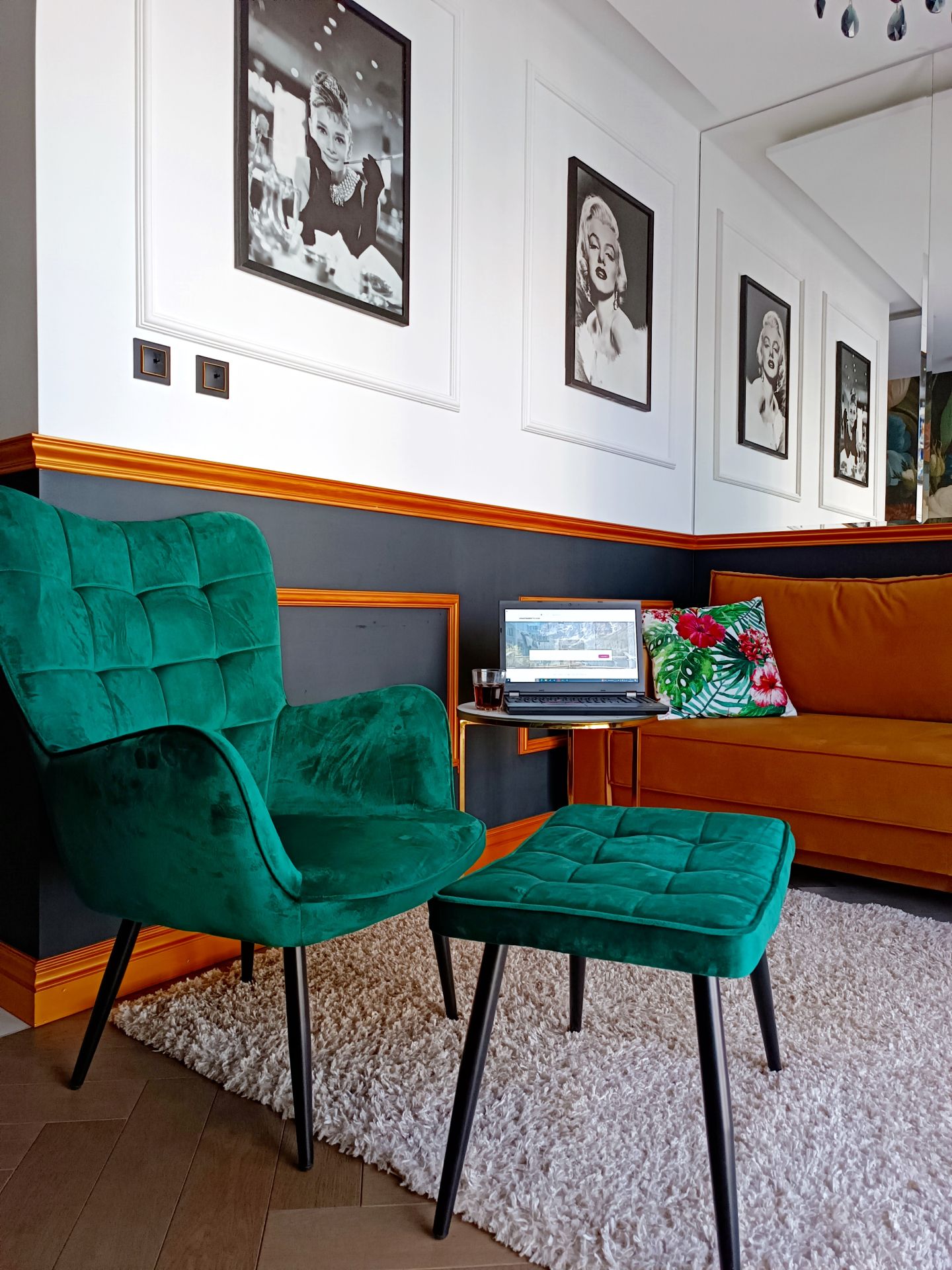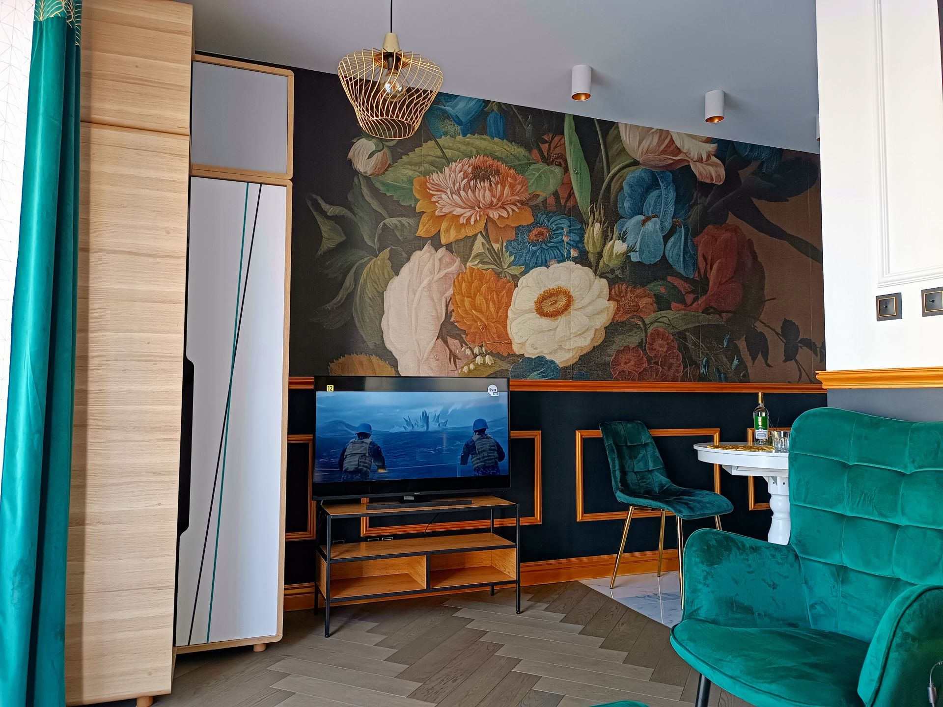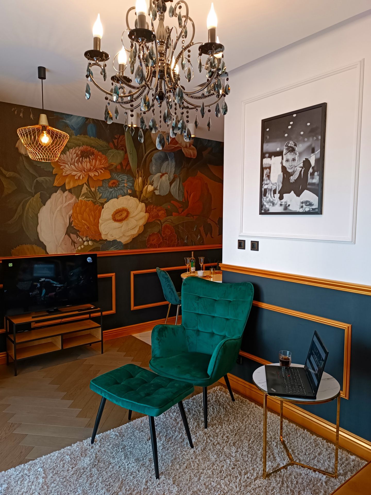 Mieszkanie urządzone jest w wyjątkowy sposób przez firmę projektowo-aranżacyjną w stylu GLAMUR. Wyjątkowo nowoczesny styl czyni mieszkanie ciekawą opcją dla krótkoterminowego turysty chcącego poczuć się ekstrawagancko podczas urlopu. Apartament stanowi również doskonałą alternatywę dla studenta z uwagi na bliską odległość do kampusu Politechniki (mieszczący się za ogrodzeniem). Dużym atutem apartamentu jest wyposażenie w funkcjonalne urządzenia t.j. zmywarka, piekarnik, pralka, płaski telewizor, płyta indukcyjna.