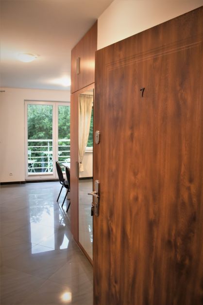 Duży, komfortowy, ekskluzywny apartament dla czterech osób: sypialnia, salon,przedpokój, kuchnia z jadalnią, łazienka, balkon.