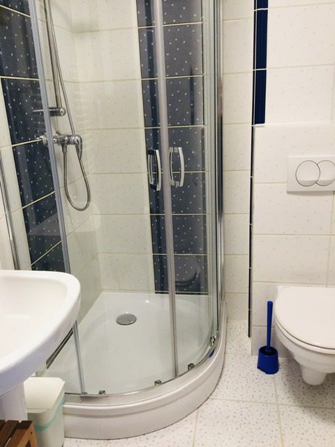 Łazienka z kabiną prysznicową.