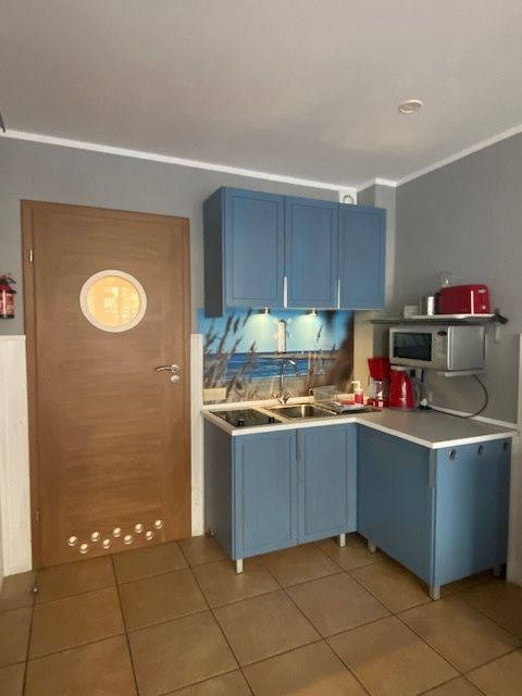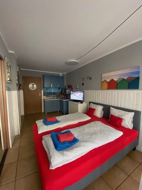 Małe studio dla dwóch osób, zlokalizowane na najniższej kondygnacji. Wyposażone w łóżko 140x200, kącik jadalny oraz aneks kuchenny.W apartamencie znajduje się także telewizor LCD z odtwarzaczem DVD.