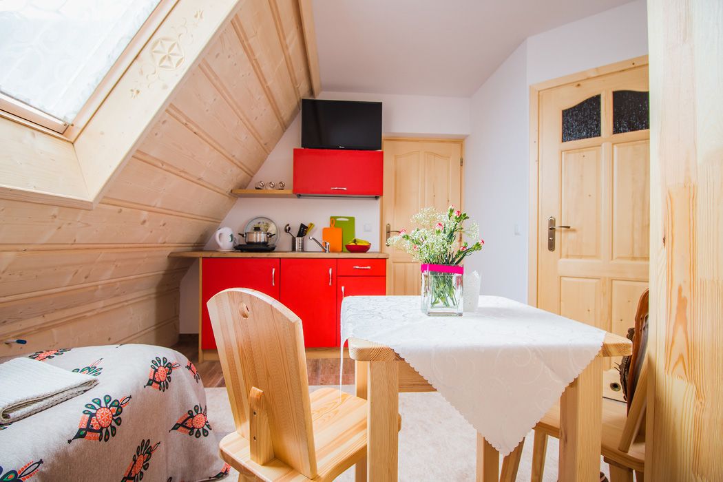 Oferujemy Państwu komfortowo wyposażony apartament typu studio z aneksem kuchennym 3- osobowy. Studio wyposażone w aneks kuchenny zawierający płytę indukcyjną, lodówkę, czajnik, sztućce oraz naczynia. Przestronna, nowoczesna łazienka z prysznicem. Naszym gościom zapewniamy ręczniki, suszarkę do włosów i niezbędne środki higieny. Do dyspozycji bezpłatny internet bezprzewodowy, TV, aneks. W budynku posiadamy dodatkową ogólnodostępną dużą kuchnię z jadalnią. W willi znajduje się kącik zabaw dla dzieci a na zewnątrz ogrodzony ogródek grillowy i plac zabaw dla dzieci. Na terenie Willi znajduje się bezpłatny, ogrodzony parking.