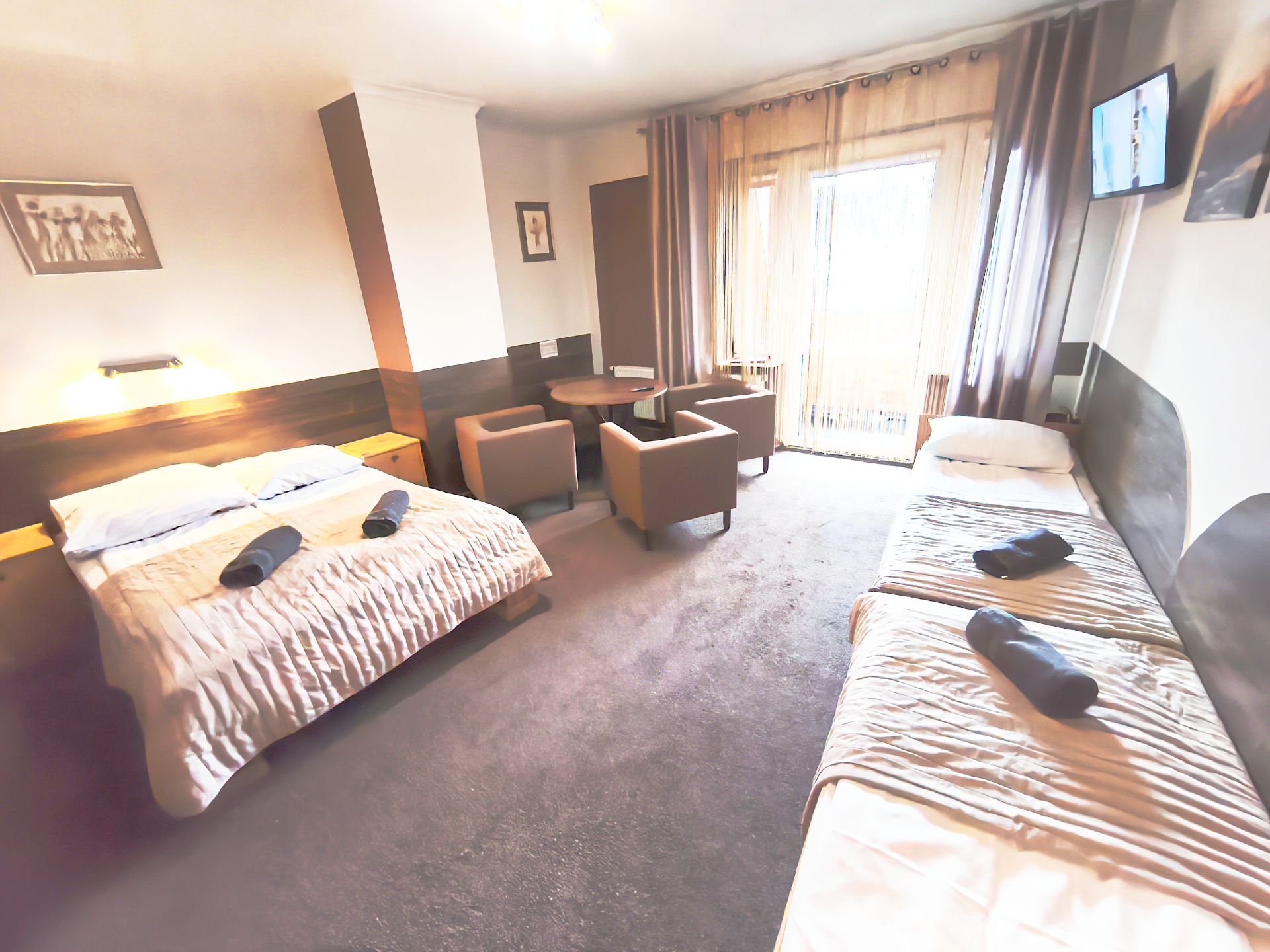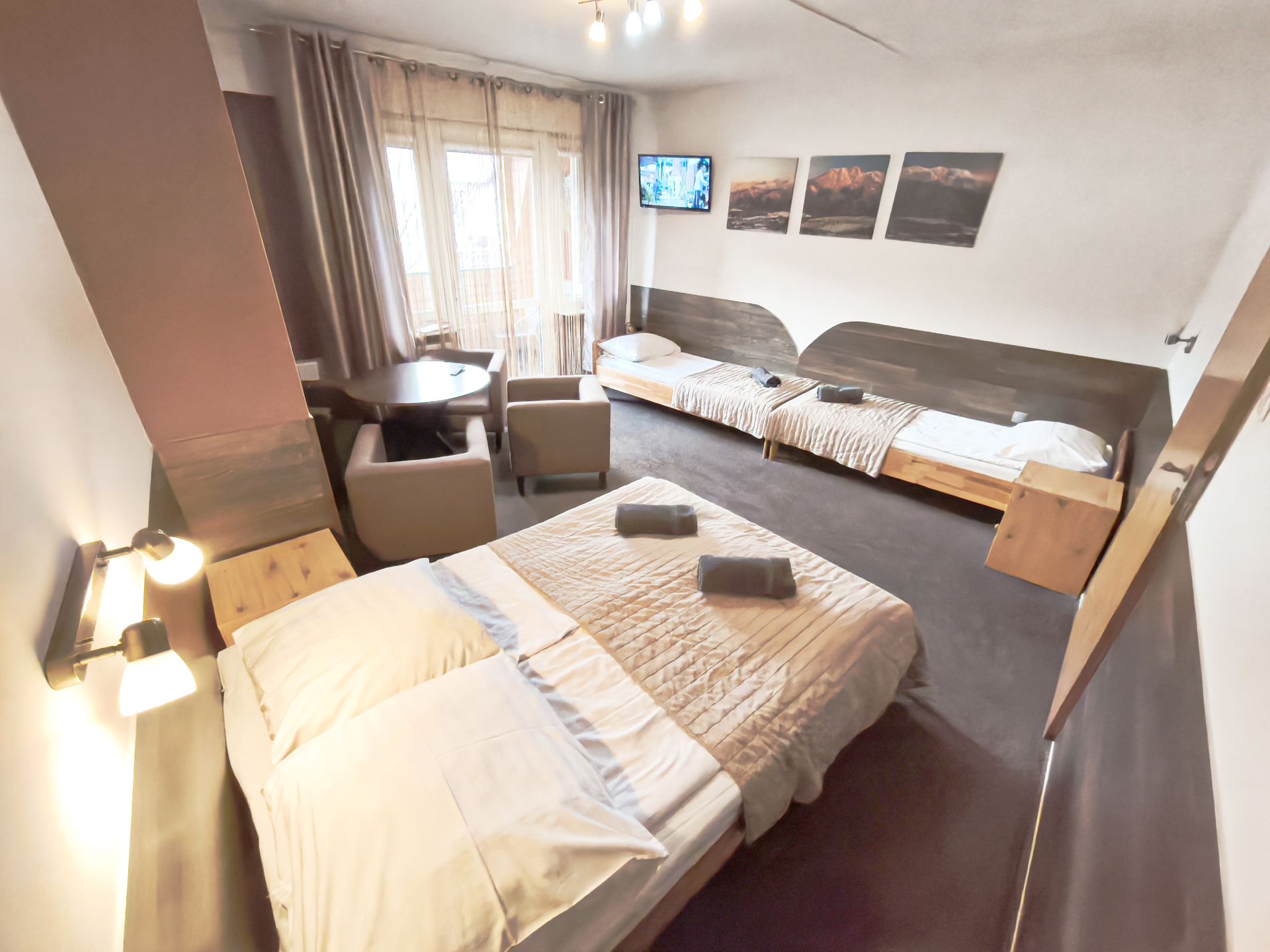 Apartament 4 osobowy z łazienką, TV, lodówką i aneksem kuchennym, o powierzchni ok. 40 m2.