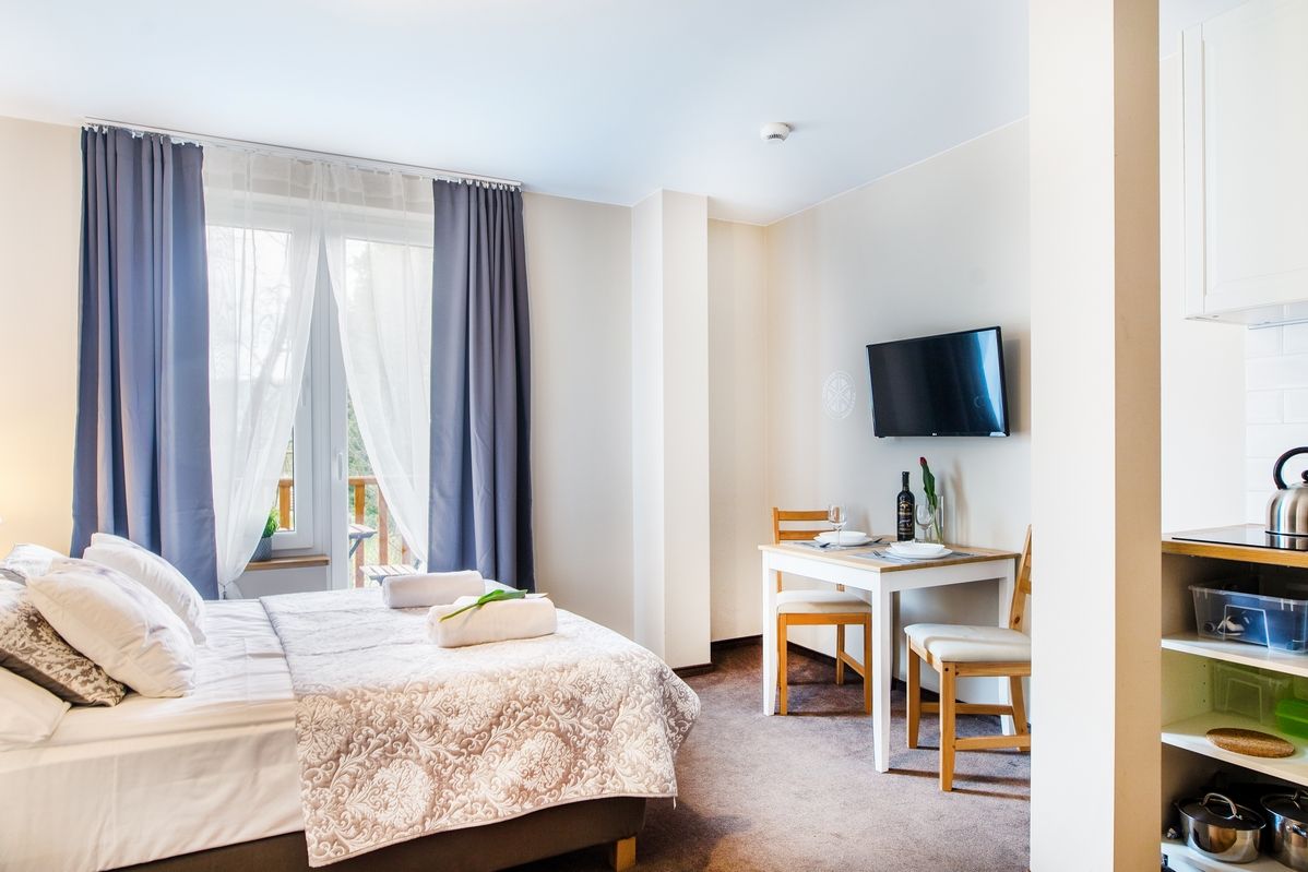 Apartament zlokalizowany jest na I piętrze. Powierzchnia łączna apartamentu to 17,65m2 (nie licząc powierzchni łazienki). Mieszkanie zapewnia komfort oraz domową atmosferę. Idealny dla max 2 osób.