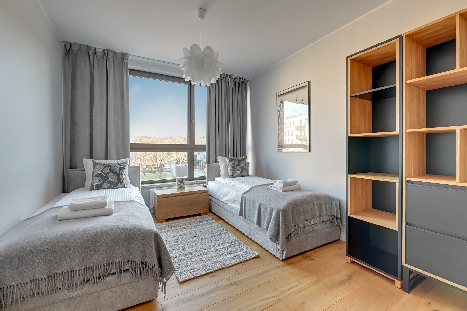 Zapraszamy do przestronnego apartamentu (74 m2) w nowoczesnym kompleksie Garnizon. Idealny dla 6 osób, oferuje dwie przytulne sypialnie, salon z aneksem kuchennym i dwie łazienki.