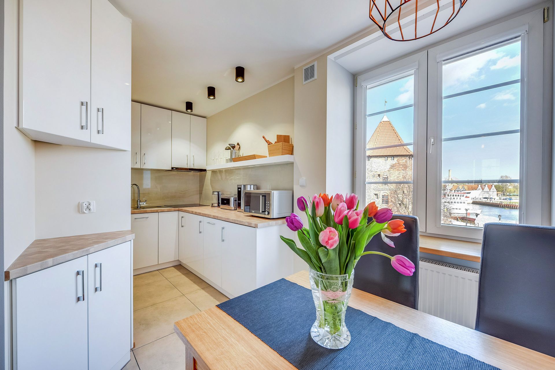 Ekskluzywny apartament zlokalizowany w bardzo prestiżowej części Starego Miasta z bezpośrednim widokiem na rzekę Motławę, zabytkowe kamienice i Polską Filharmonię Bałtycką. Apartament składa się z niezależnej sypialni (w sypialni dwuosobowe łóżko), kuchni z jadalnią, łazienki z prysznicem. Apartament przyjemny zarówno dla pary jak i singla. W sąsiedztwie liczne restauracje oraz nasłynniejsze gdańskie atrakcje turystyczne takie jak Żuraw, Fontanna Neptuna i Zielona Brama.